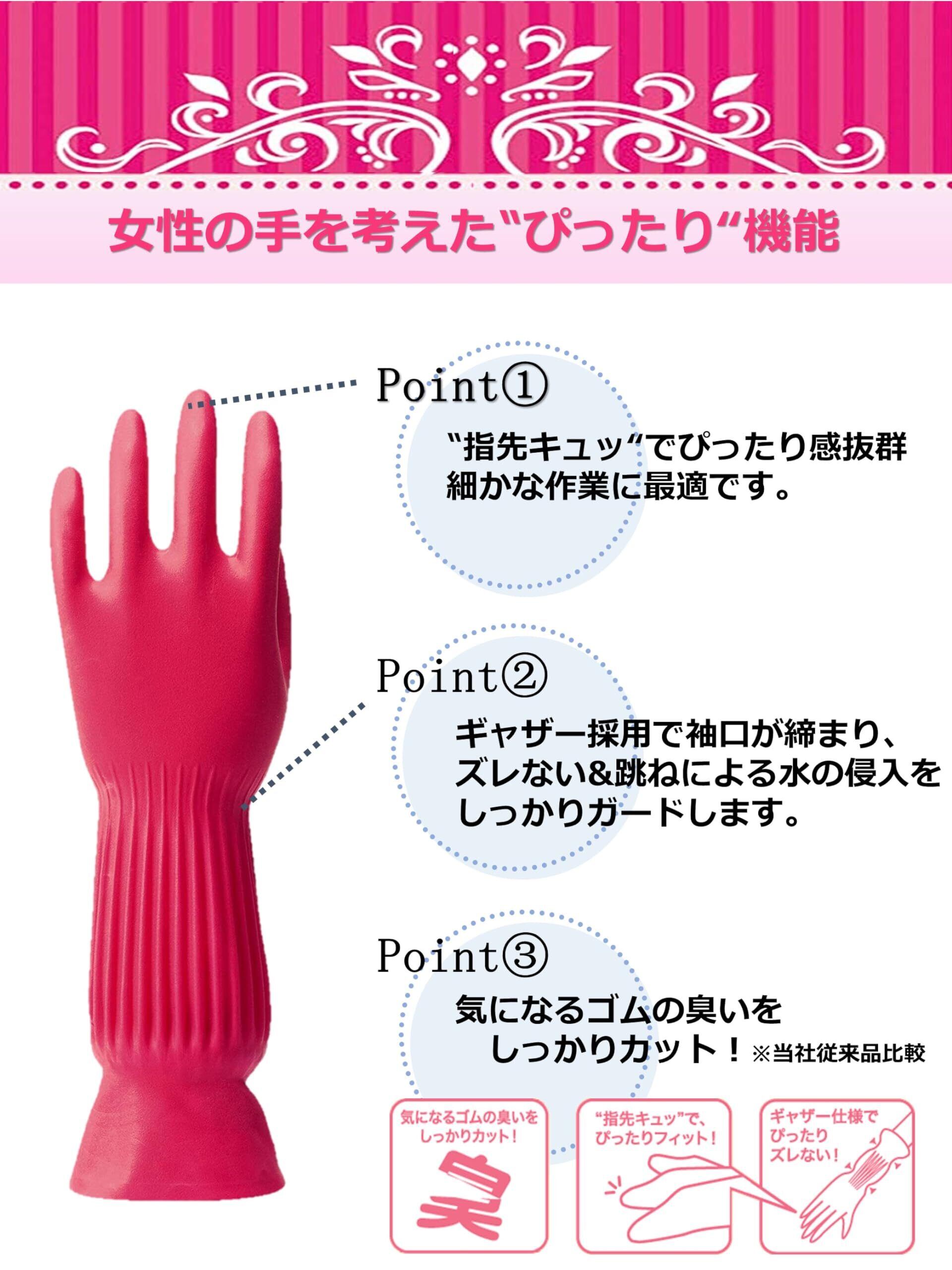 脱ぎはめしやすいのに、感覚のつかみやすい細い指先です。気になる袖口も、絞ってあるのでズレにくくなっています。