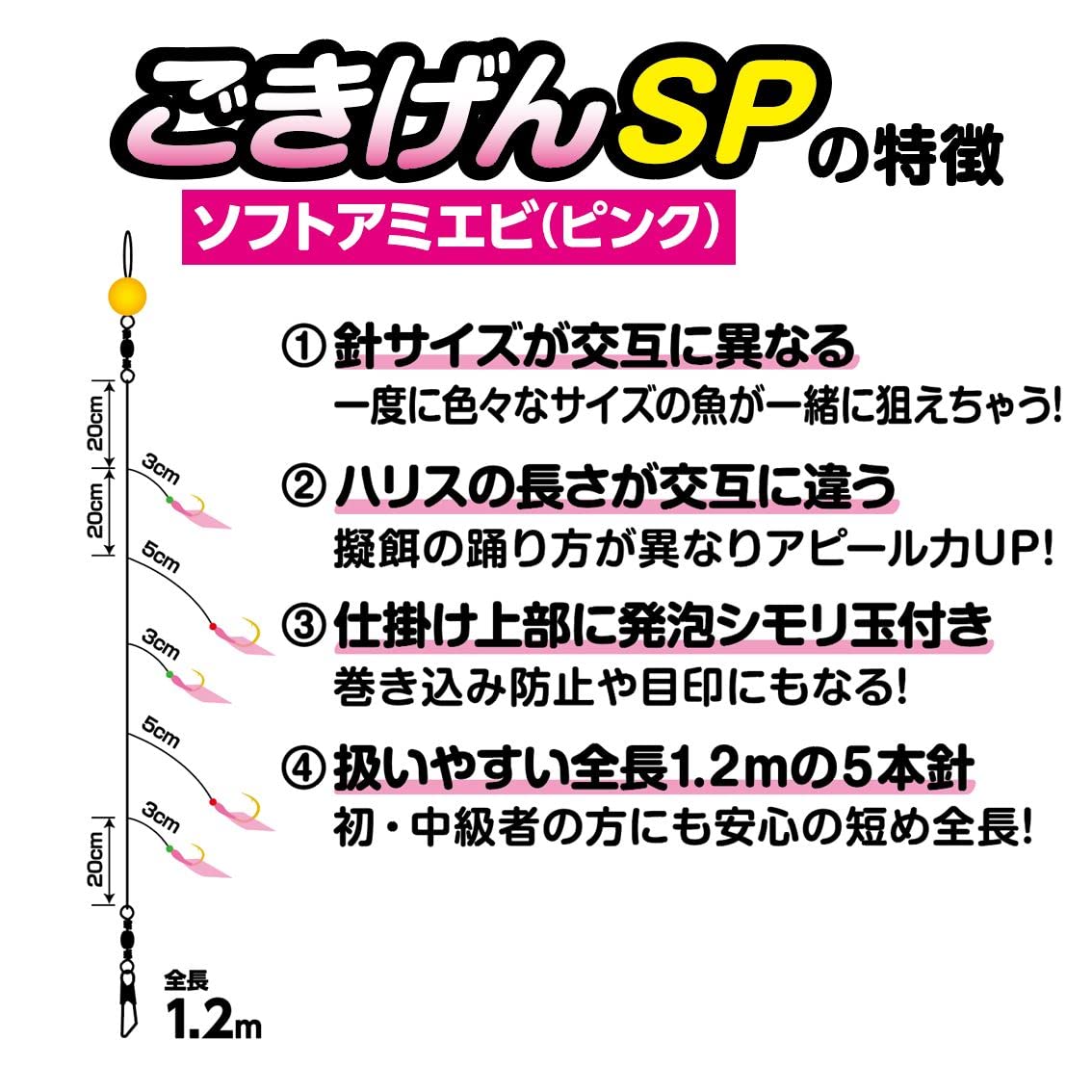 初中級にも安心の1.2m・5本針の短め設計