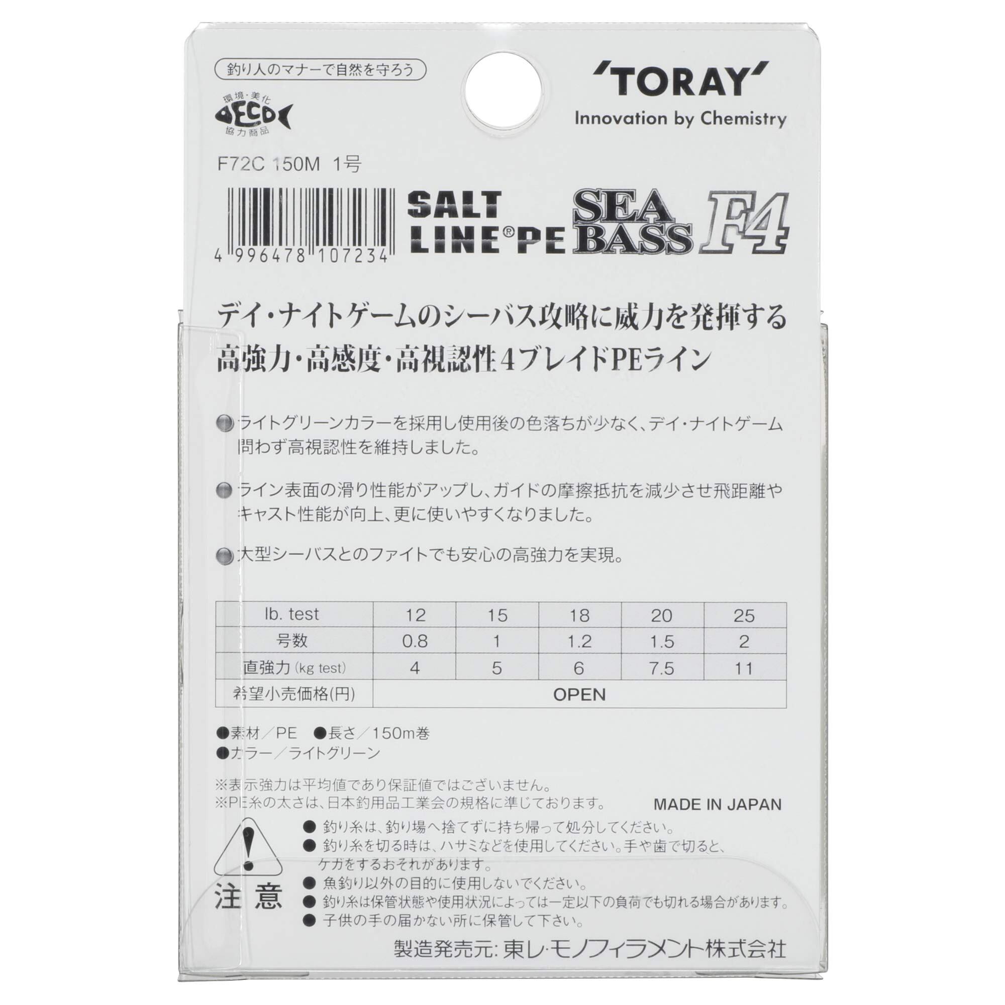 東レ(TORAY) ソルトラインPEシーバス F4 ライトグリーン 150m