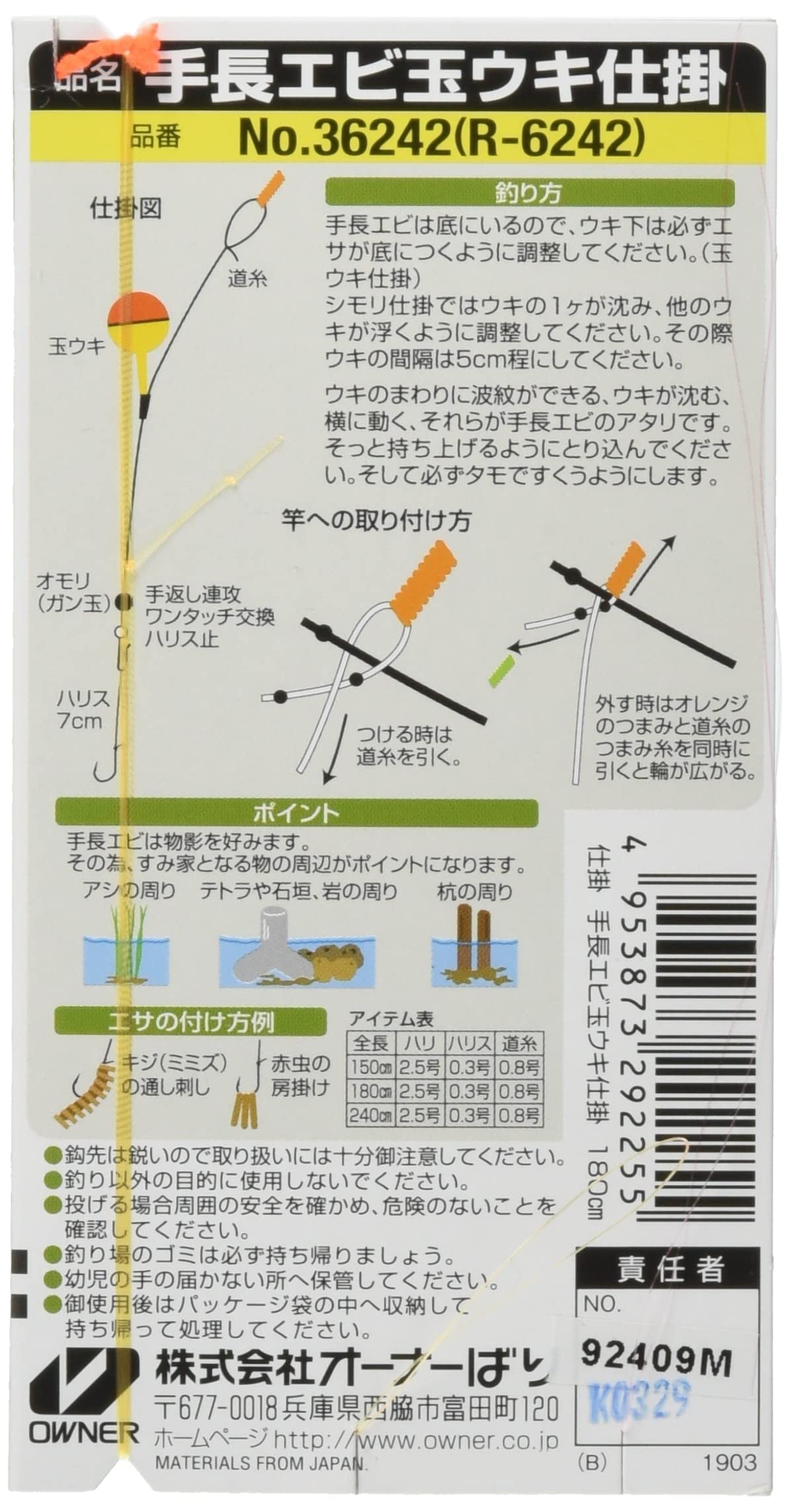 オーナー(OWNER) 手長エビ玉ウキ仕掛 No:36242 180cm