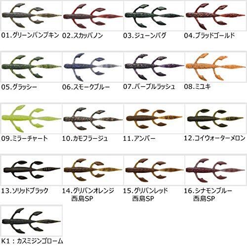 「NEWT」(ヌート)3.5インチは、ただのダウンサイジングモデルではなく、3.5インチに合わせてテールの形状、手足のサイズ、ボディの厚さ等を変更。そうすることで、ヌートが本来持っている手足の揺らめきや、テールのヌルッとした動きはそのままに、テキサス・キャロ・ジグトレーラーはもちろんのこと、ダウンショットにも高次元で対応。これまでのホッグ系やクロー系に反応しなくなったバスに絶大な効果を発揮します。バスはもちろん、キジハタやアイナメ、ソイなどのロックフィッシュにも効果がります。