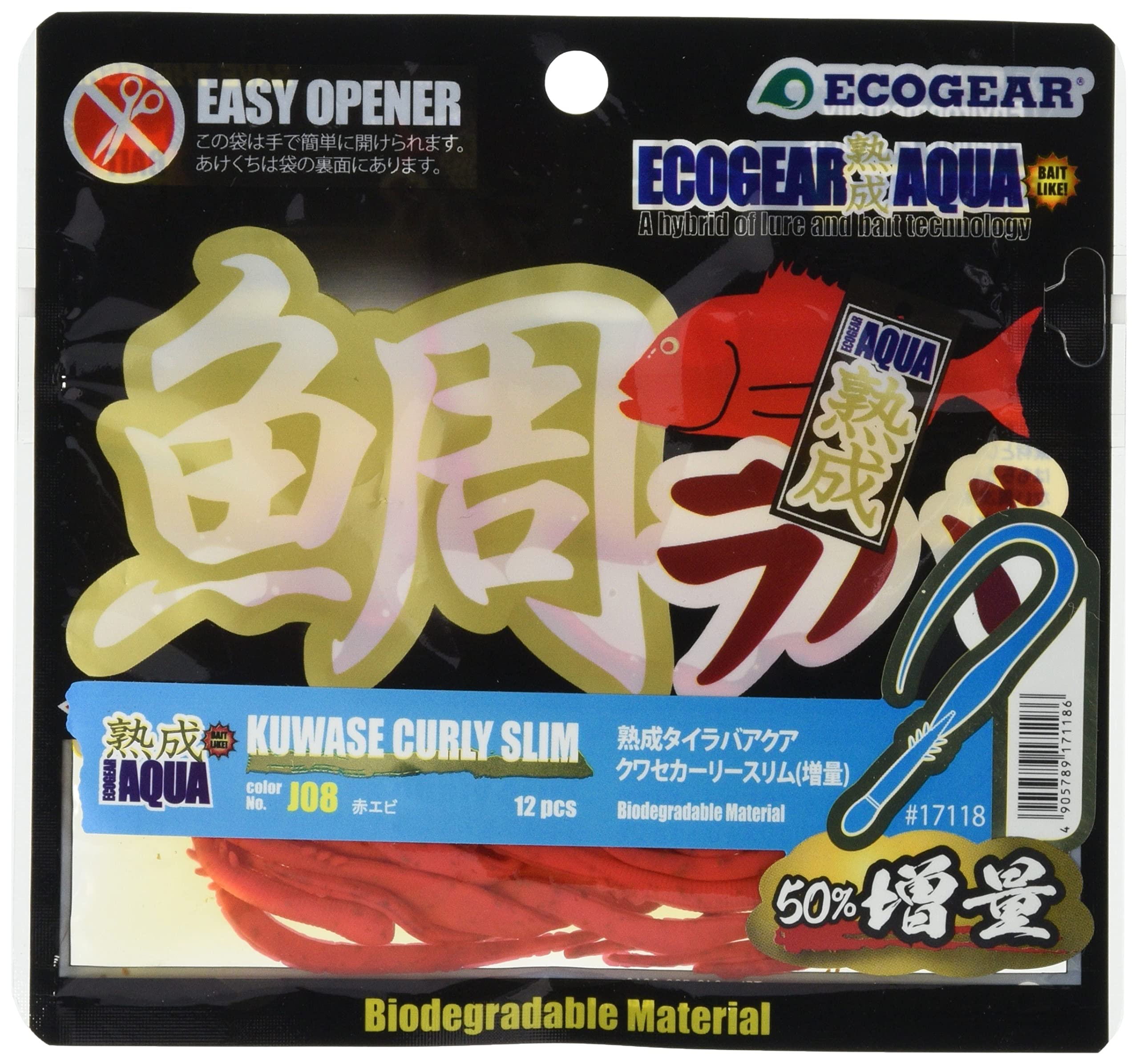 ルアーとエサの概念を破壊した「エコギア アクア」を、よりエサに近いポジションでさらなる釣果を徹底追及した究極のソフトルアーが「エコギア熟成アクア」シリーズ。そのマテリアルを使った「熟成タイラバアクア」は、通常のネクタイでは反応が得られないような厳しい状況下でも、味と匂いの効果をさらに高めたソフトマテリアルとの相乗効果で驚異のバイト数と確実なフッキングを実現しました。 「熟成タイラバアクア クワセカーリースリム」は、細めのロングカーリーテールが生む変幻自在のアクションにより、微波動ながらもしっかりアピール。低速から高速まで安定したアクションに仕上がっています。
