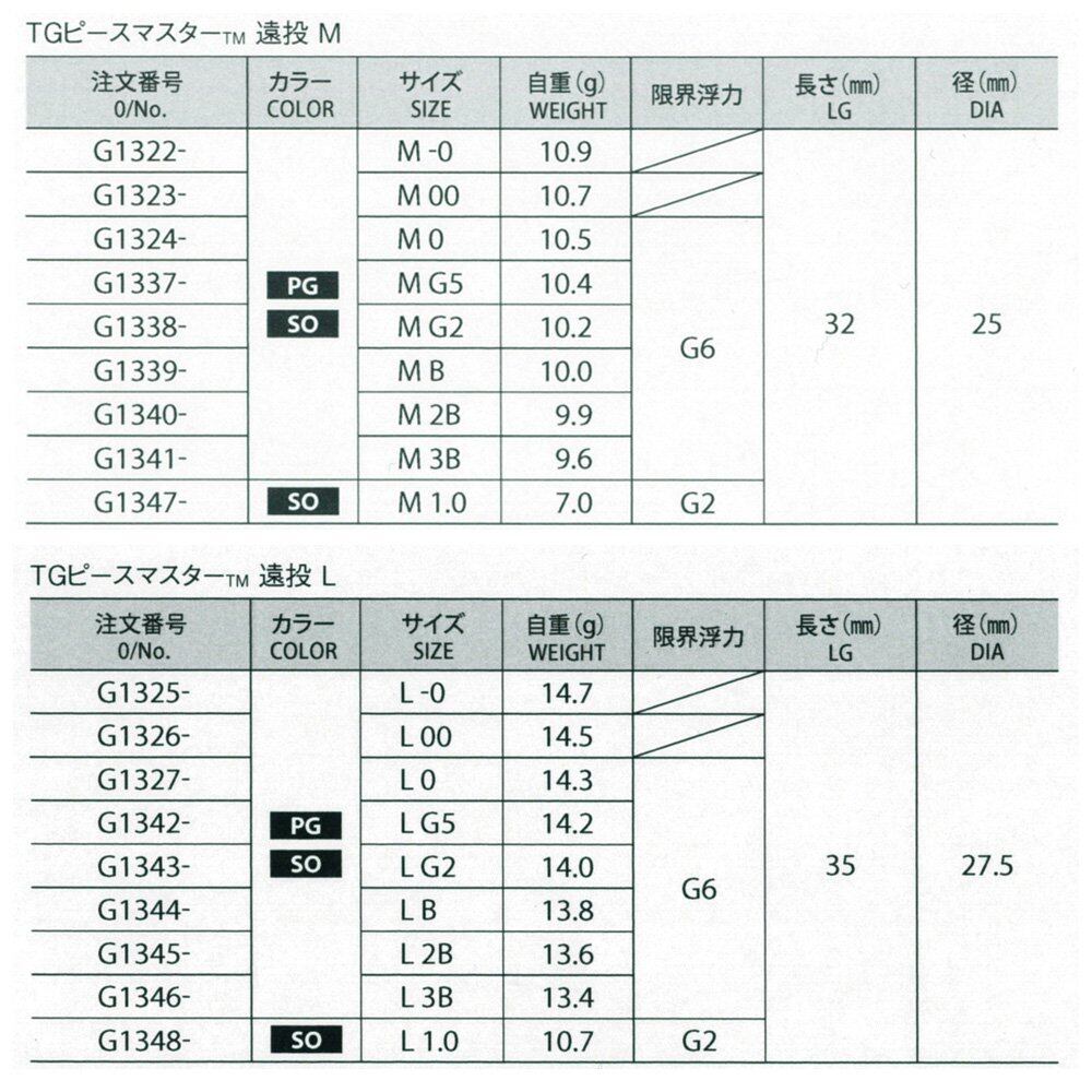 【数量限定】DUEL(デュエル) フカセウキ TGピースマスター 遠投 M・L PG/SO 自重:7.0g~14.9g 磯釣り