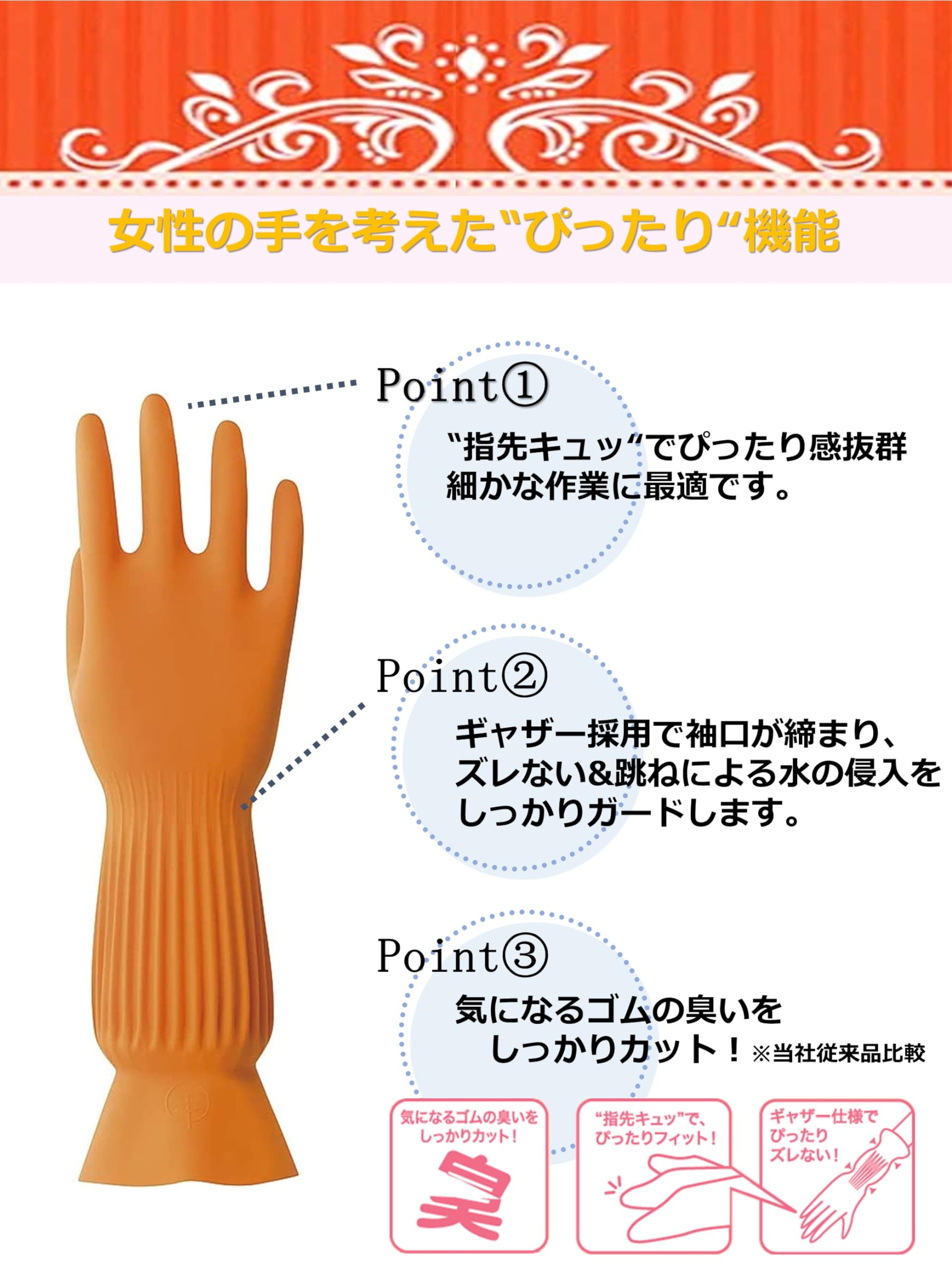 脱ぎはめしやすいのに、感覚のつかみやすい細い指先です。気になる袖口も、絞ってあるのでズレにくくなっています。