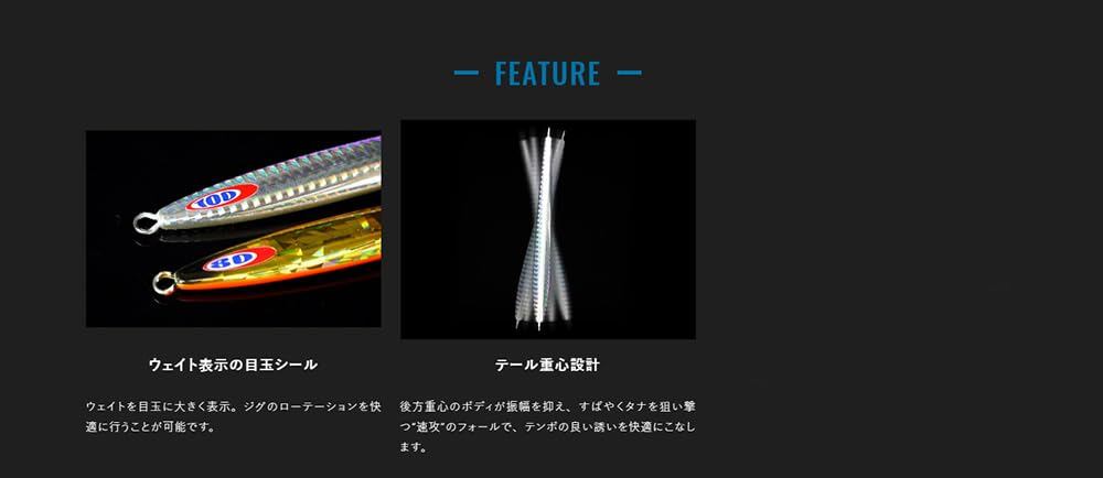 素早くタナを狙い撃てる直線的なフォール姿勢。フォールスピードを利用したリアクションバイト狙いにも有効です。