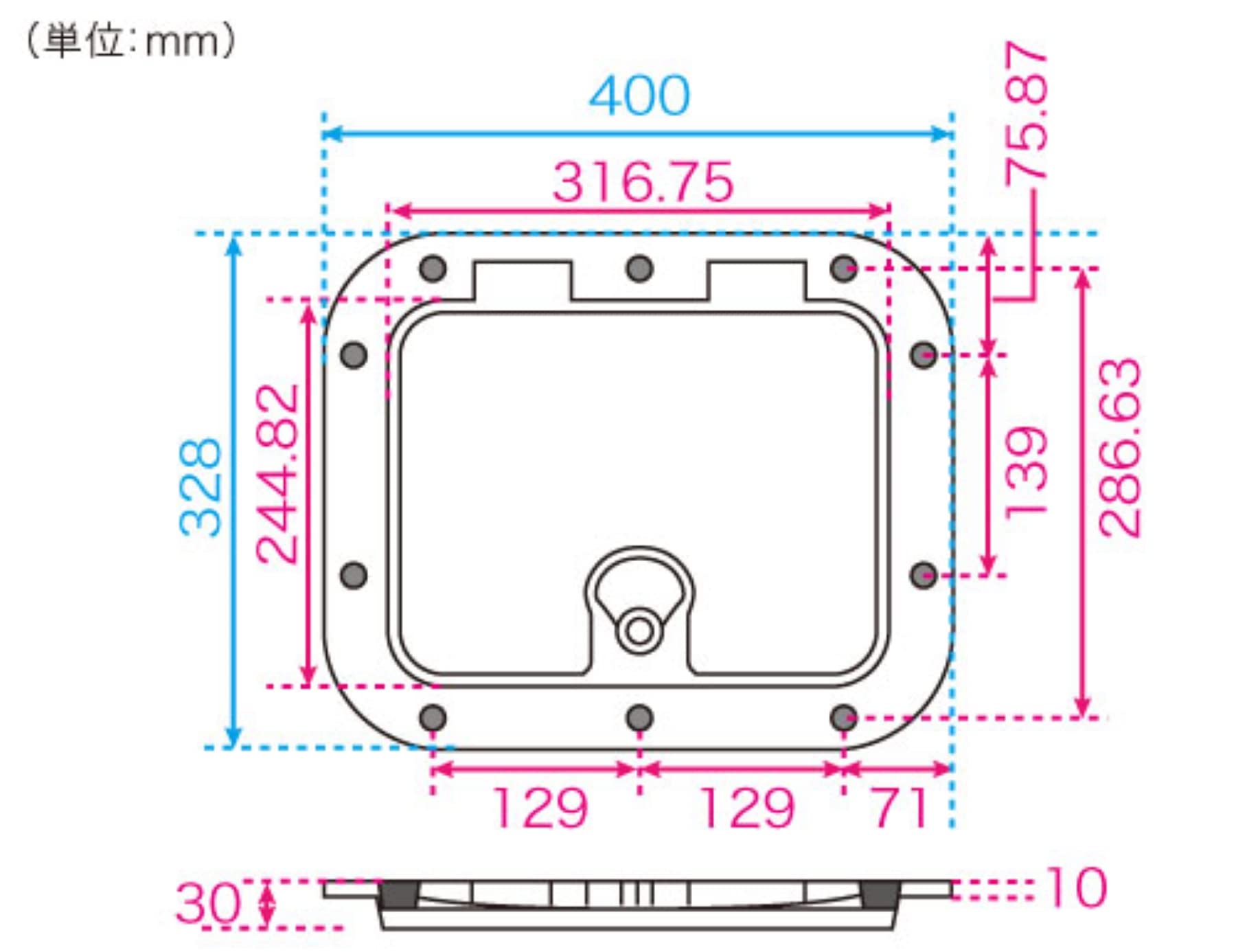 穴開け寸法(縦×横):245×317mm