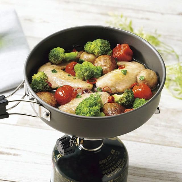 軽さと強さを両立 チタンよりも軽く熱伝導率も高いアルミニウム製。表面を硬く強くする硬質アルマイト加工で耐久性もアップ。 1~2人用にピッタリ 一度にいろいろな食材を調理できる大きさ。これ一つで肉も野菜も一気に焼き上げます。 持ち運びに便利なポーチつき フライパンの持ち手を折りたたんで付属のポーチに収納することでコンパクトに持ち運びできます。