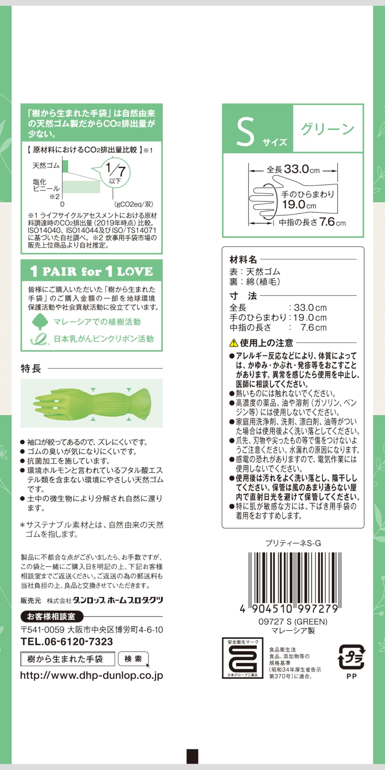 ダンロップ 天然ゴム プリティーネ S グリーン