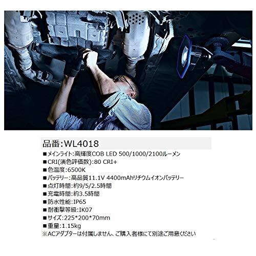 TAKENOW フロアライト WL4018 USB充電式 500/1000/2100ルーメン(3段階調整) 180℃調整ハンドル 立てかけて使用 USBケーブル付属 防水