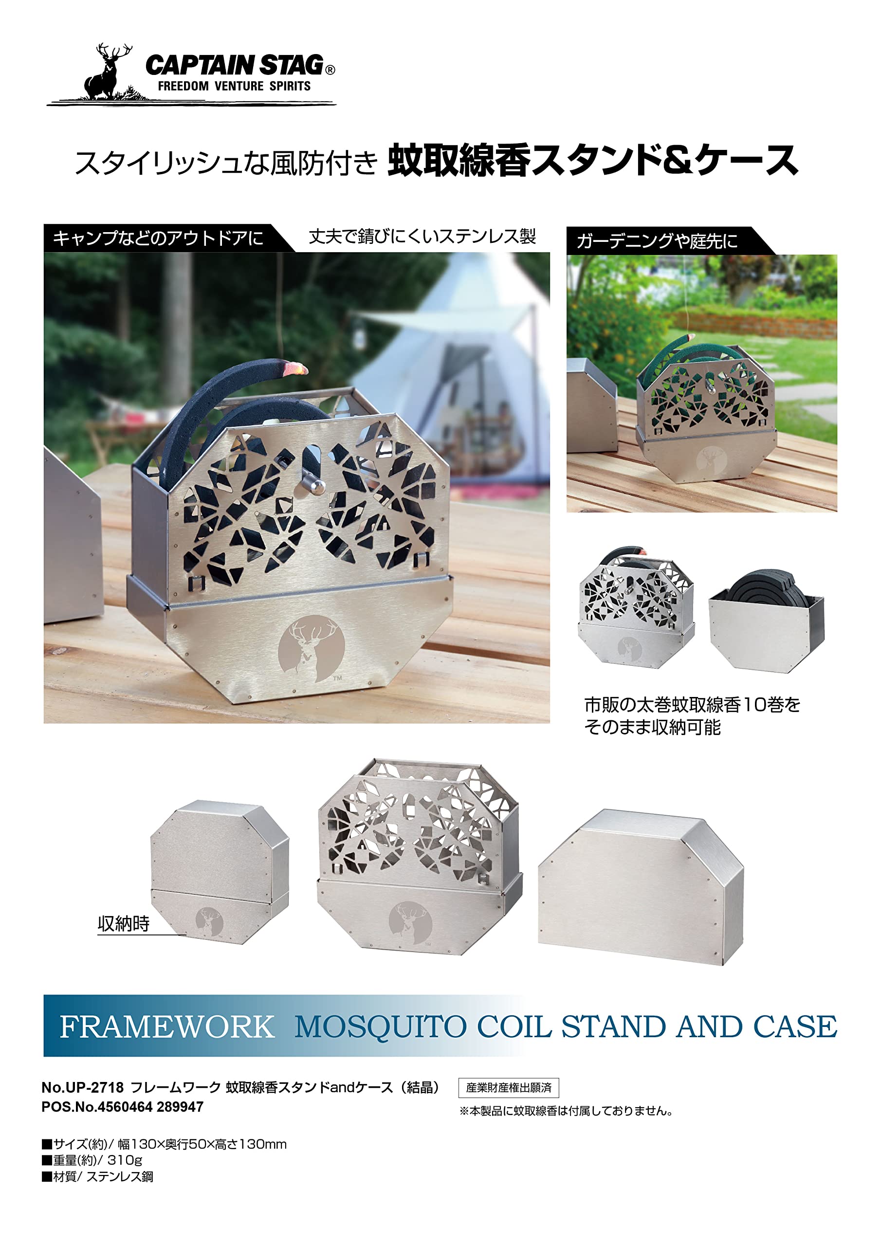 キャプテンスタッグ(CAPTAIN STAG) 蚊取り線香入れ 蚊取り線香ホルダー 蚊取り線香スタンド&ケース 結晶 ステンレス製 フレームワーク UP-2718