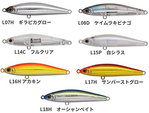 L15P白シラス:ナチュラルに魚に発見させたいときの、クリア要素を持つパール系。薄めのパールと透明なホロは、マヅメの薄明時やナイトゲームでも適度なナチュラルさとアピールを両立。