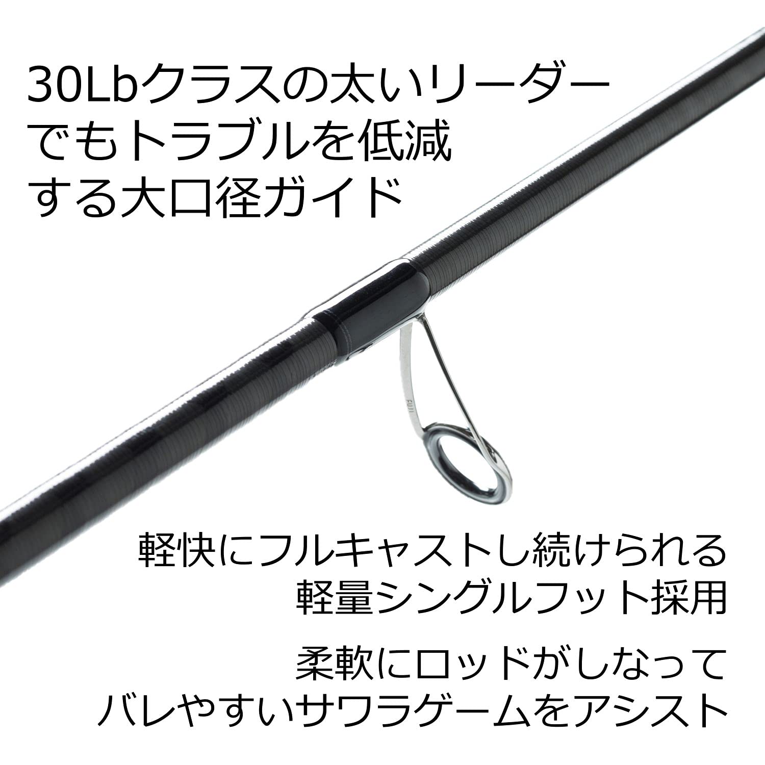 対応ルアー自重:7~40g / PEライン:0.8~1.5号 / 使用材料:カーボン98%,グラス2%