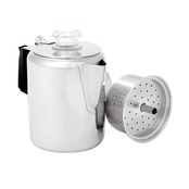円柱形のクラシックなデザインの18/8ステンレススチール製パーコレーターです。家庭やアウトドアで美味しいコーヒーが手軽に味わえます。持ちやすいハンドルのデザインですので、コーヒーを上手に注ぐことができます。注ぎ口はコーヒーの滴がたれないデザインです。フタの取っ手はプラスチック製で、コーヒーの濃さを確認することができます。