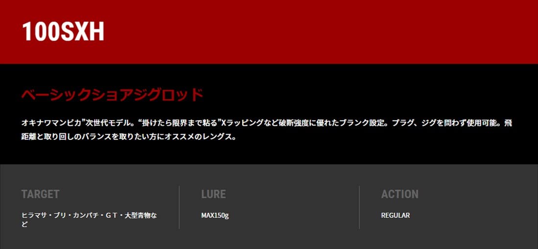 伝説のスーパーヘビーショアジグロッド"オキナワマンビカ"次世代モデル。"掛けたら限界まで粘る"Xラッピングなど破断強度に優れたブランク設定。プラグ、ジグを問わないプロフェッショナルモデル。