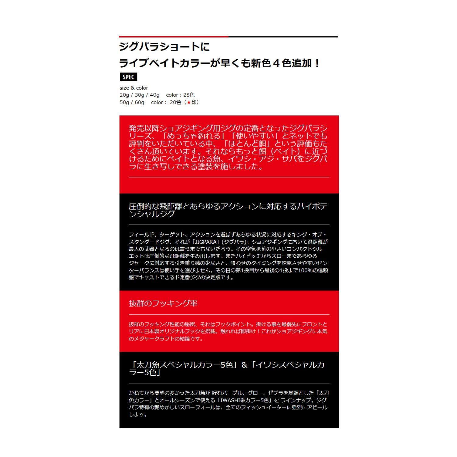 メジャークラフト メタルジグ ジグパラ ショート ライブベイトカラー ルアー JPS