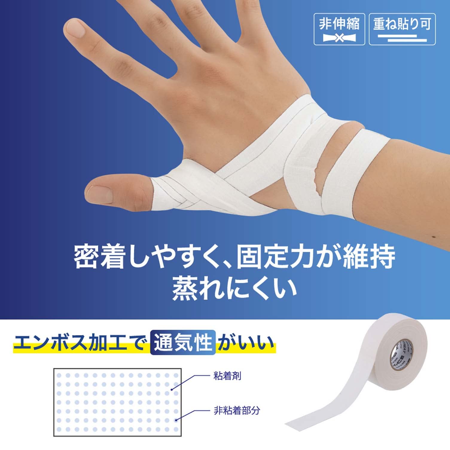 軽い使用感でスピーディーに巻ける固定用テープ