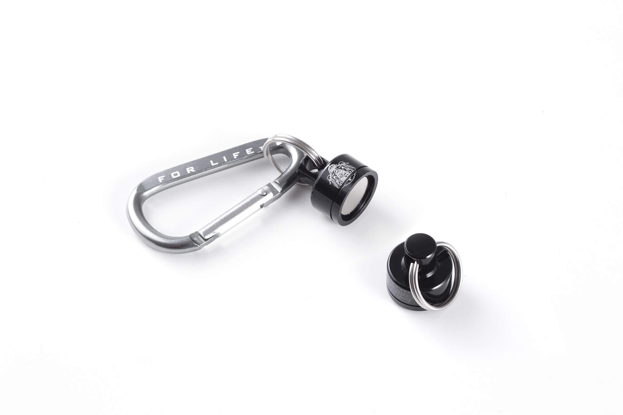 内側にある溝加工によって着脱時のズレを防止し、いつもぴったりと着脱できます。装着が簡単なカラビナ付き。
