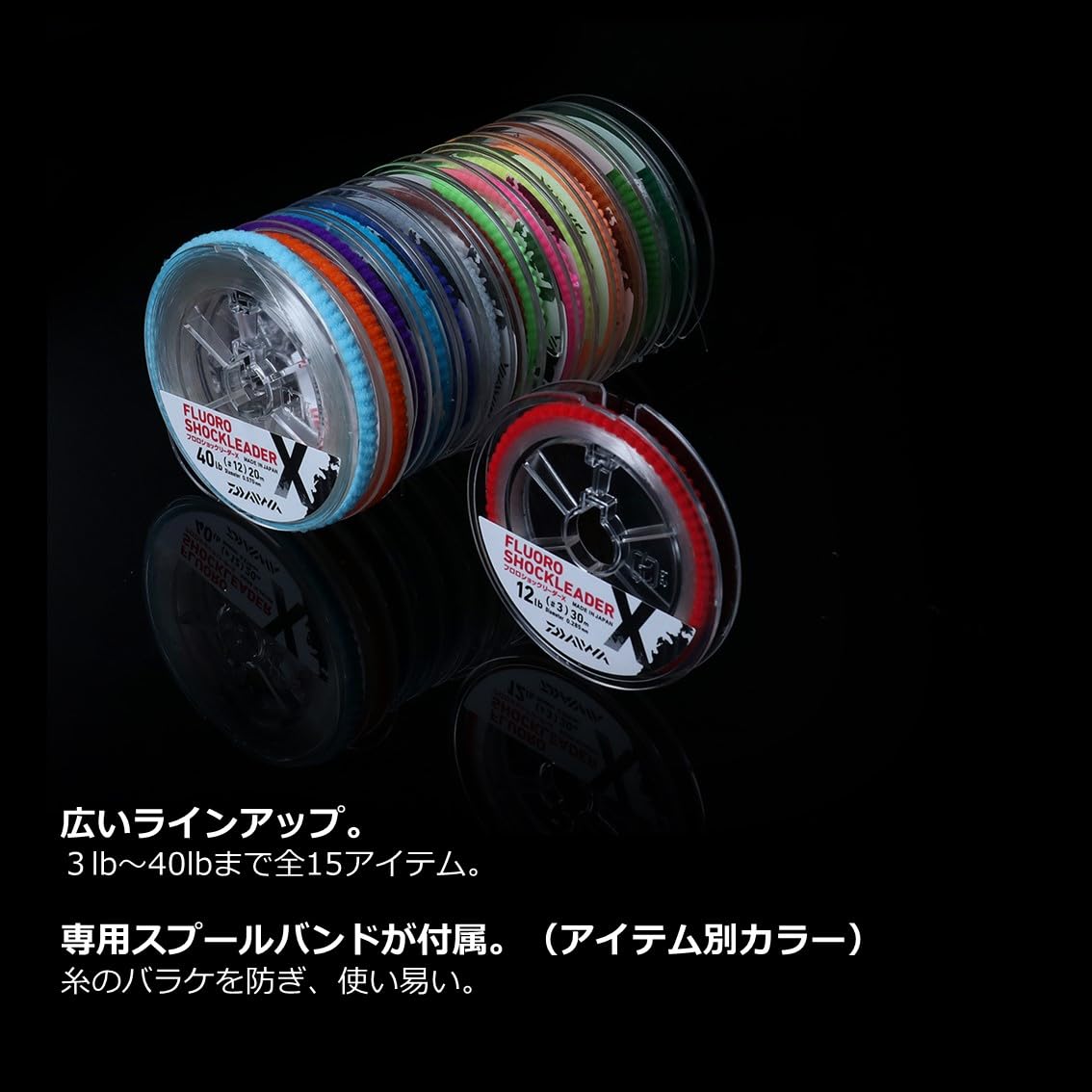 専用スプールバンドが付属(アイテム別カラー)で糸のバラケを防ぎ、使い易い。