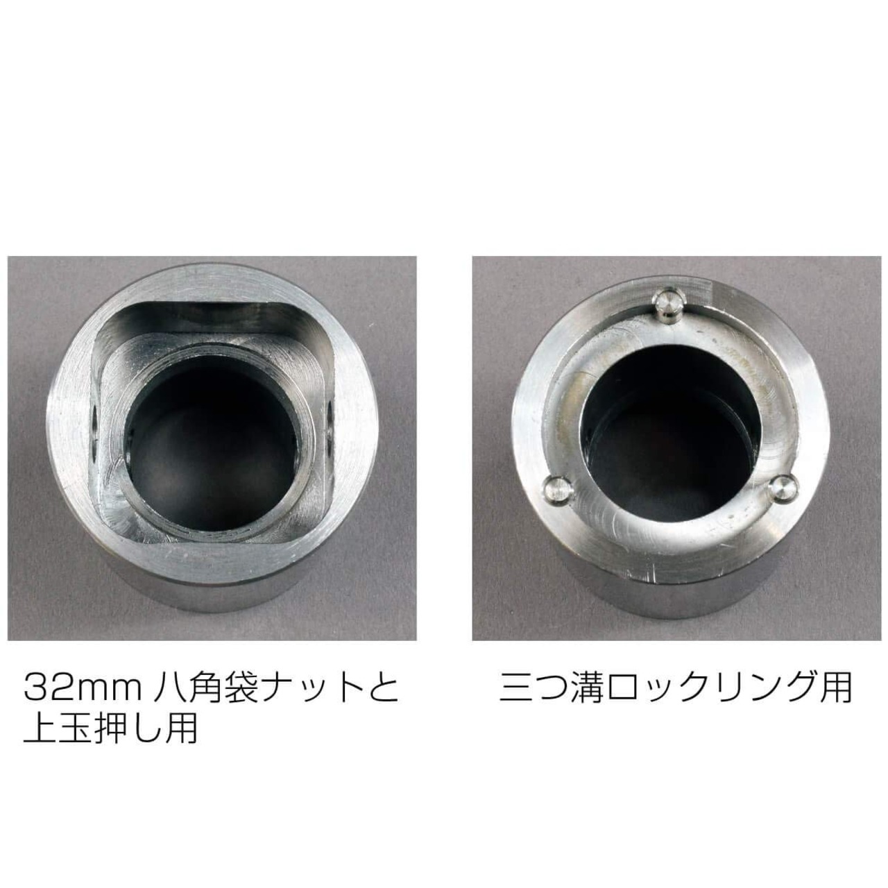適応ロックリング:三つ溝タイプ適応袋ナット:32mmひとつで八角袋ナット・三つ溝ロックリングに対応※オーバーサイズには使用できません。