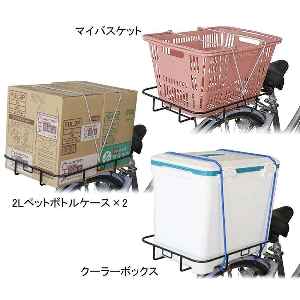 クーラーボックスや段ボールなどの大型の荷物も安定して積載できます。重心が後ろに来るので前カゴに荷物を載せたときのようにハンドルがふらつくことがありません。