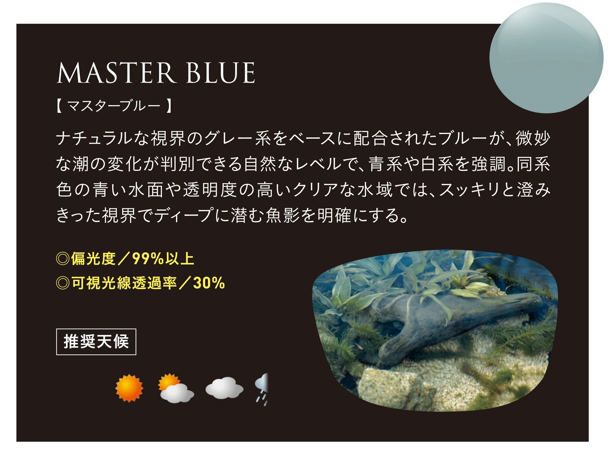 レンズカラー:マスターブルー/シルバーミラー(偏光度 99%以上/可視光線透過率 30%)