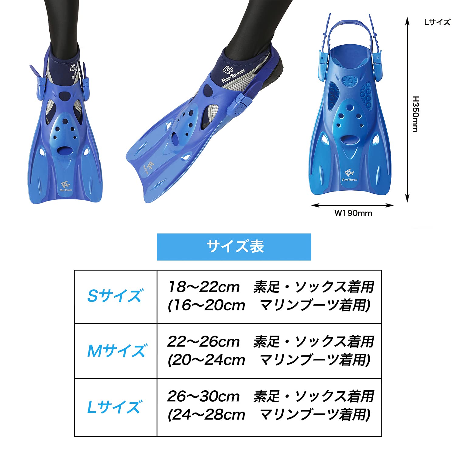 リーフツアラー(REEF TOURER) シュノーケリング シュノーケル フィン ストラップフィン 足ひれ 最軽量 コンパクト 【S/M/Lサイズ】 RF0106