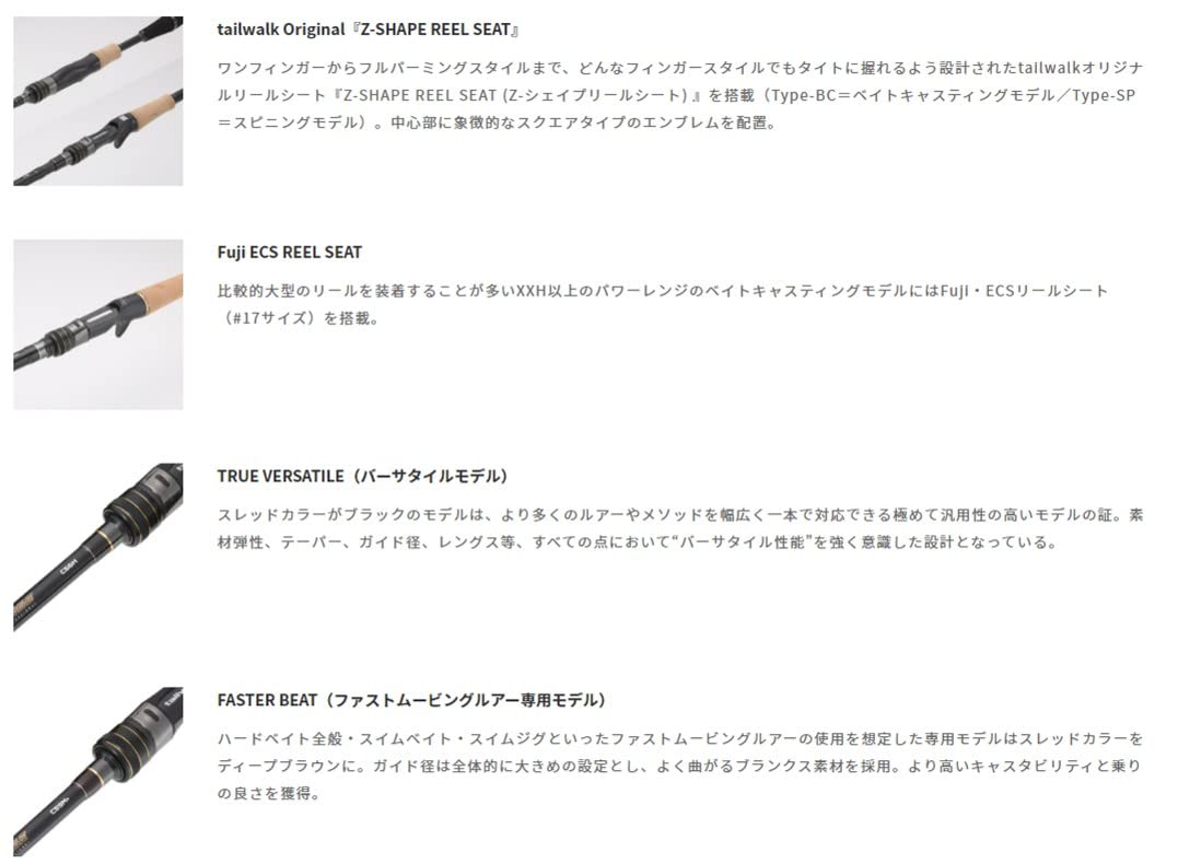 ブランクス素材そのものの見直し、tailwalkオリジナルリールシート『Z-SHAPE REEL SEAT (Z-シェイプ リールシート) 』の搭載、
