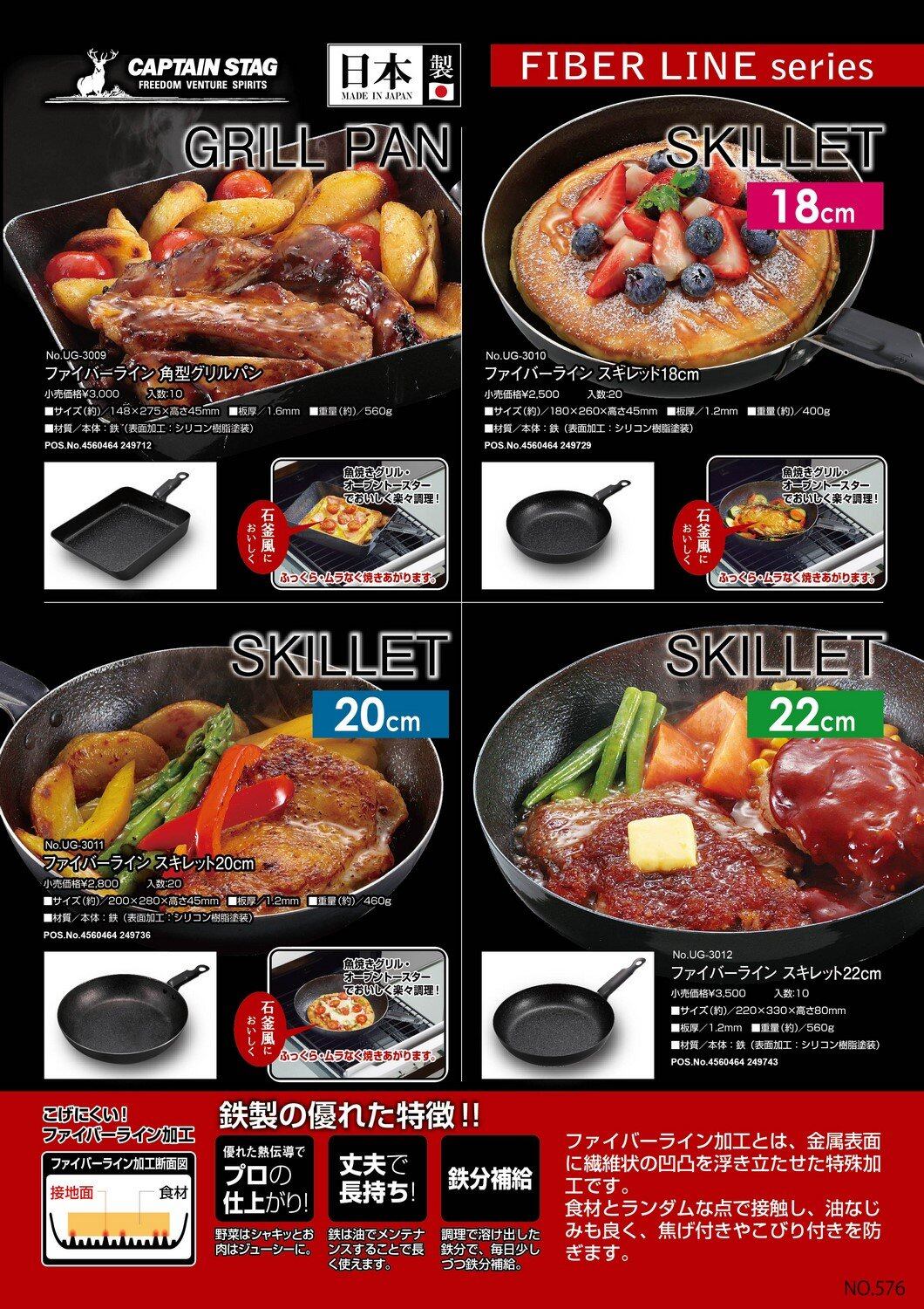 キャプテンスタッグ グランピング キッチン用品 スキレット フライパン ファイバーライン