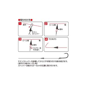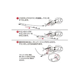 オアカサンヤエンがイカに到達し、はね上がる際、若干後退しながらはね上がりイカを捕えます。その後退を防ぎ、しっかりとヤエンをはね上げさせ、イカに掛ける為のストッパーゴムです。もちろん、オカサンヤエンだけでなく、他のヤエンでも効果を発揮します。