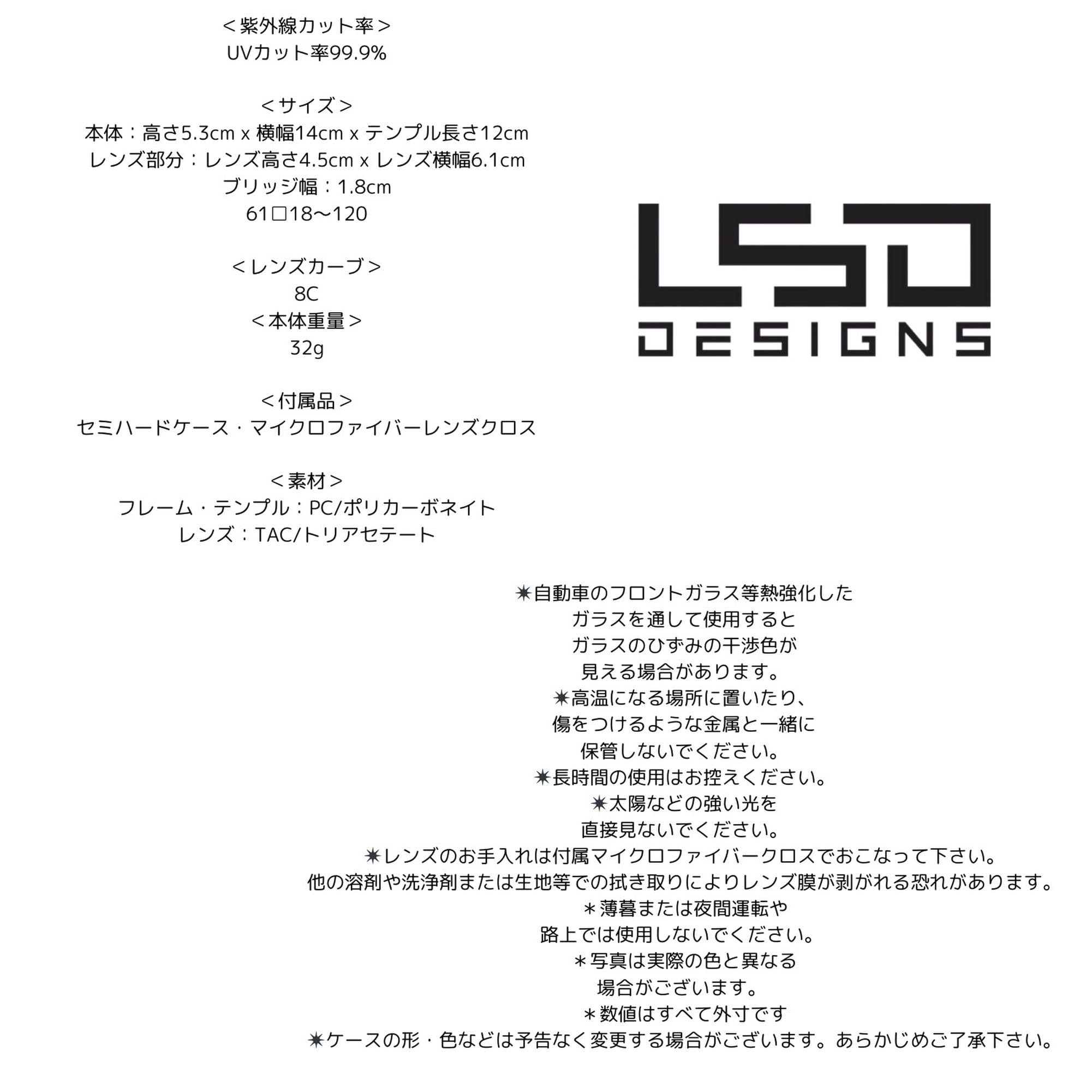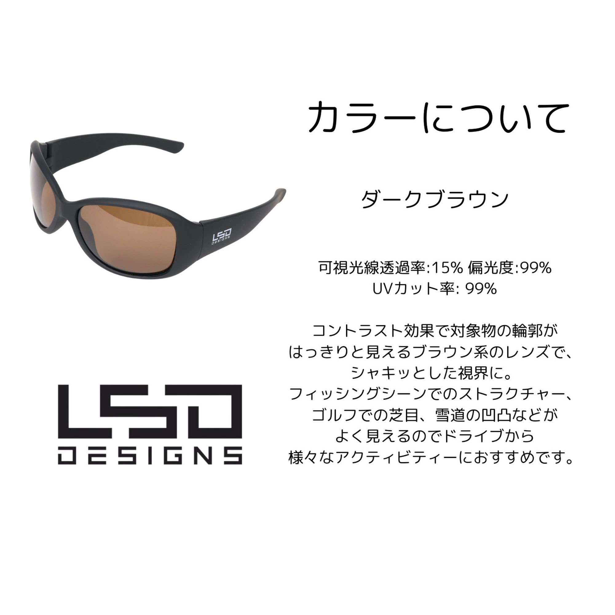 SUNGLASSES〈BR〉水面のギラツキを押さえる偏光サングラス。〈BR〉(LSD Designsのサングラスは全て偏光サングラスです。)〈BR〉〈BR〉水中が見やすくなる上、反射光をカットして目の疲れ軽減にも役立ちます。 フィッシングシーン、ドライブやゴルフなど様々なアクティビティーに。