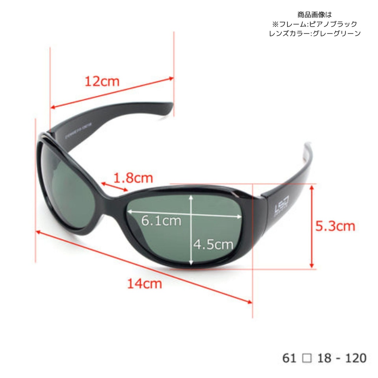 フレームサイズ :高さ5.3cm x 横幅14cm x テンプル長さ11.9cm / レンズサイズ:高さ4.5cm x 横幅6.1cm