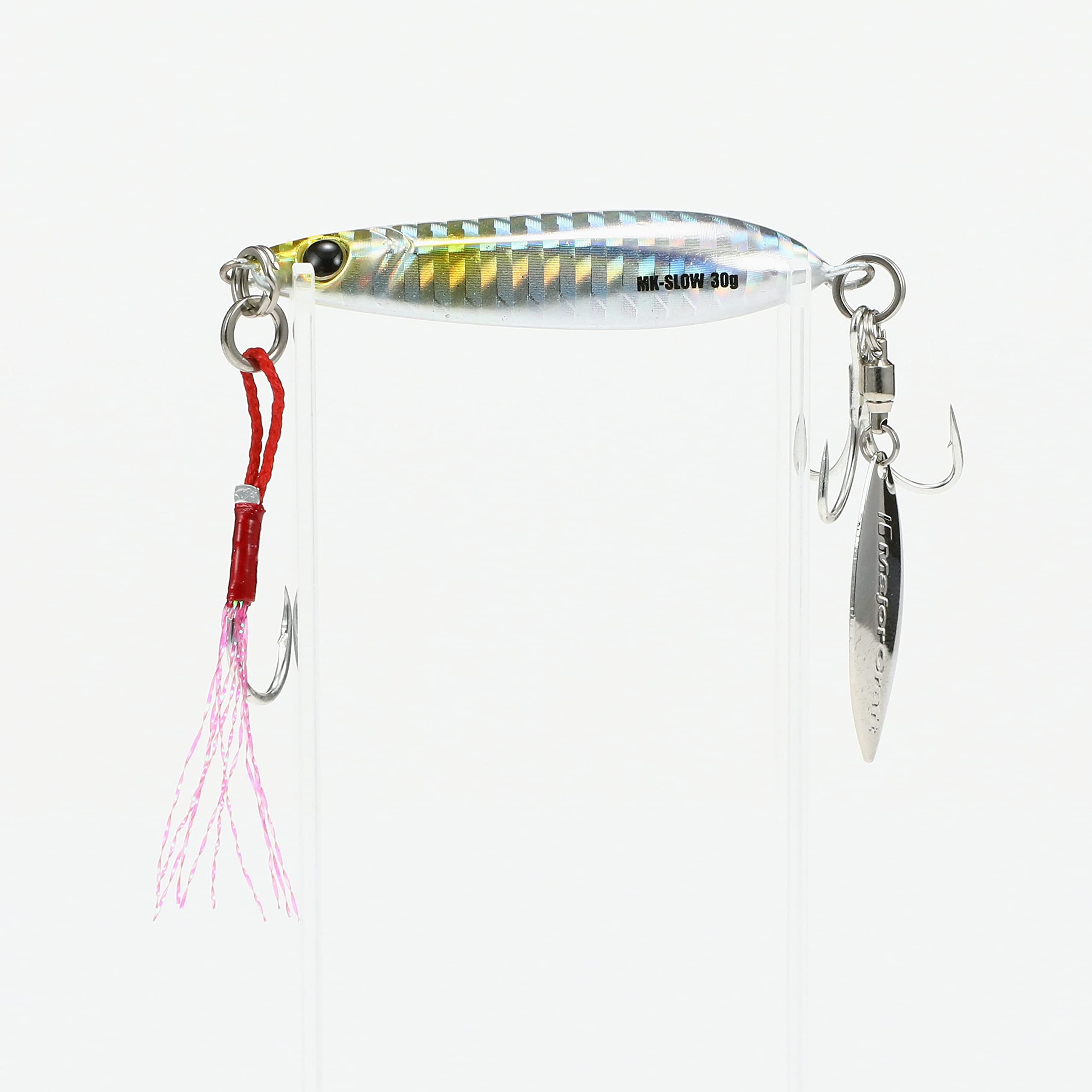 マイクロベイトなどの動きの遅いベイトに着いたターゲットにはJIGが通用しない場合があります。そんな時に最も有効なのがブレード付きジグ。あえてジグの動きを制御し、ブレードのフラッシングと微波動だけでヒットに持ち込める「巻くだけジグ」でマイクロベイトパターンを攻略してください。サバやサゴシ・サワラといったリアから食いつく魚や、根魚・マダイなどの鯛ラバで釣れる魚にも効果抜群!ターゲットを選ばない巻くだけジグ「マキジグ」でショアジギングからススーパーライトジギングまで楽しめるでしょう。
