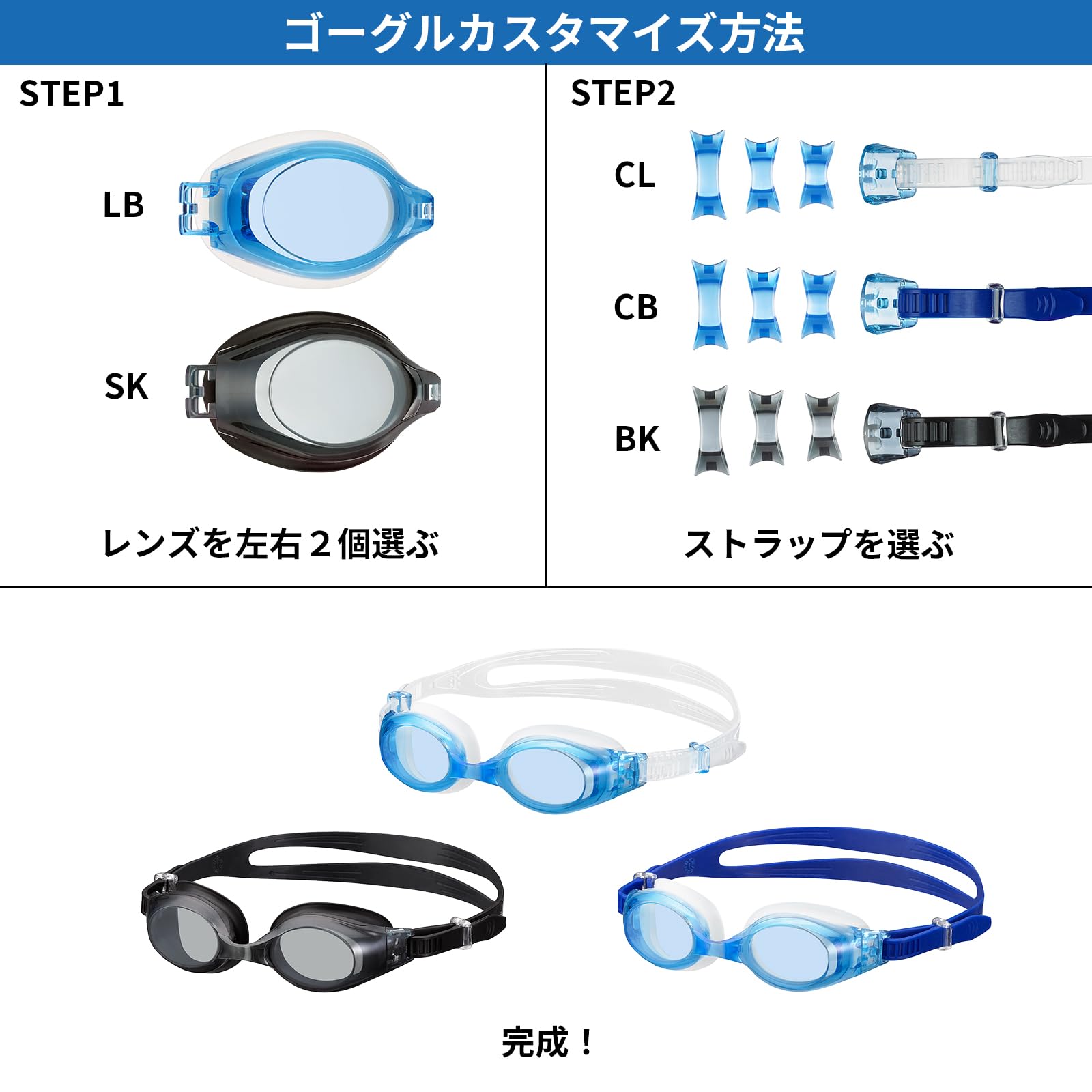 左右の視力に合わせてカスタマイズできる度付きゴーグル用レンズ、ご使用時には合わせてゴーグルパーツキット【VPS570】をあわせてご購入ください