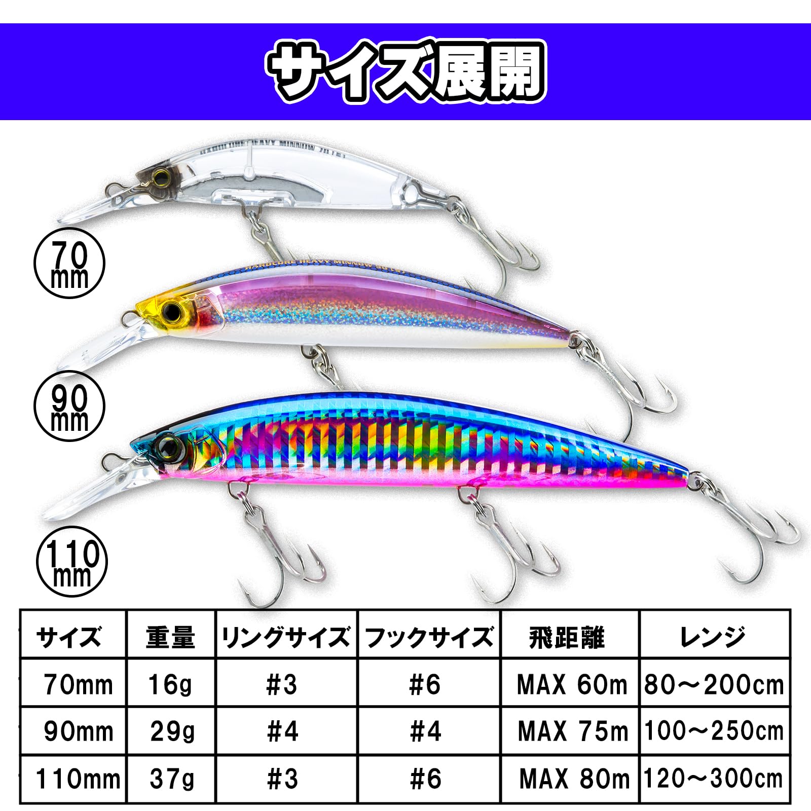 低速から高速リトリーブまで幅広く対応 重量級ぶっ飛びミノー!
