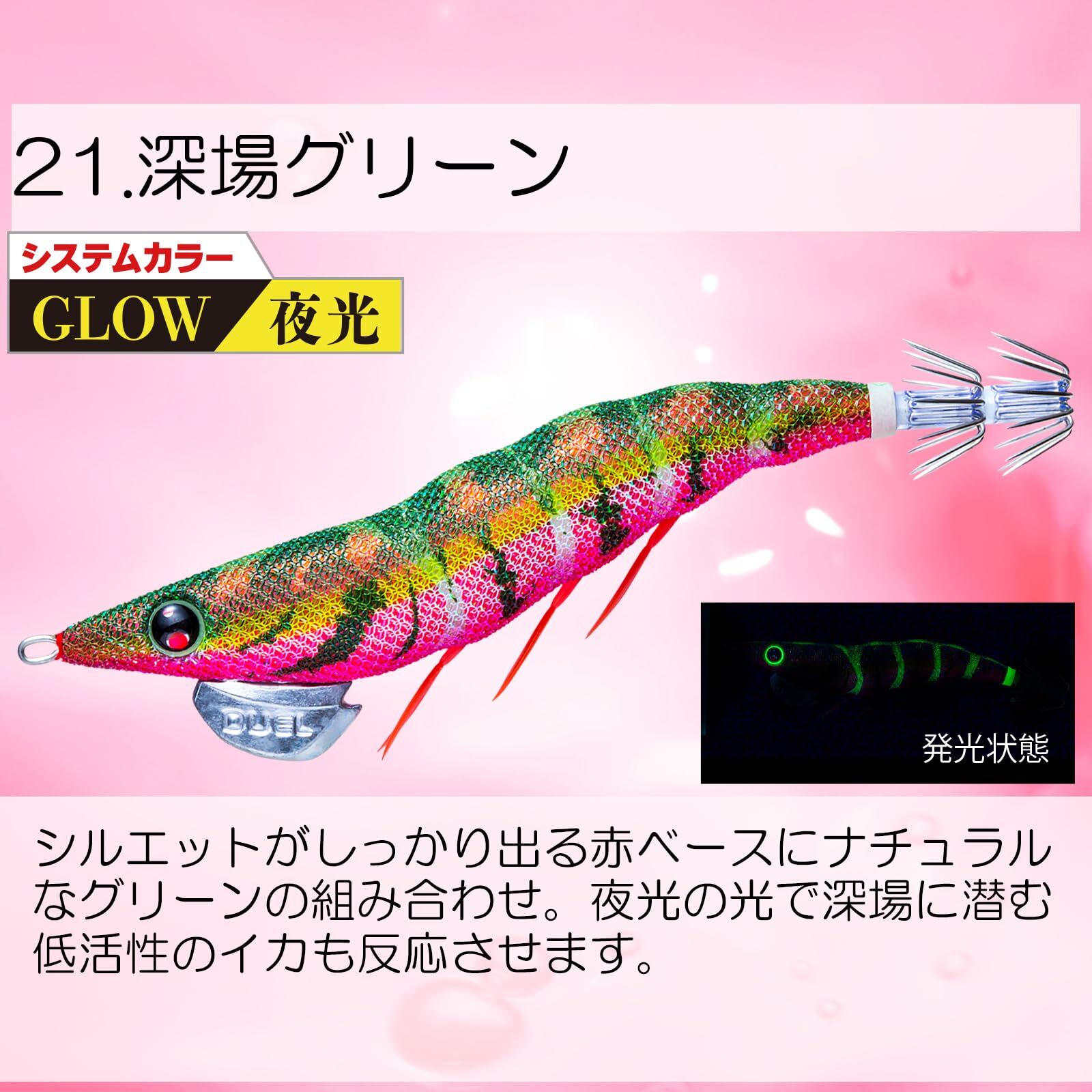 EZ-Qシリーズ史上、最強アピールの色と柄!! ●軽快ダートはそのままに「波動」「色」「音」で高活性のイカに、トリプルアピール!●色:全20色の色がスゴイ!!●音:アピール抜群のエビ音搭載!!●波動:パタパタフットライトの釣れる波動でアピール!!