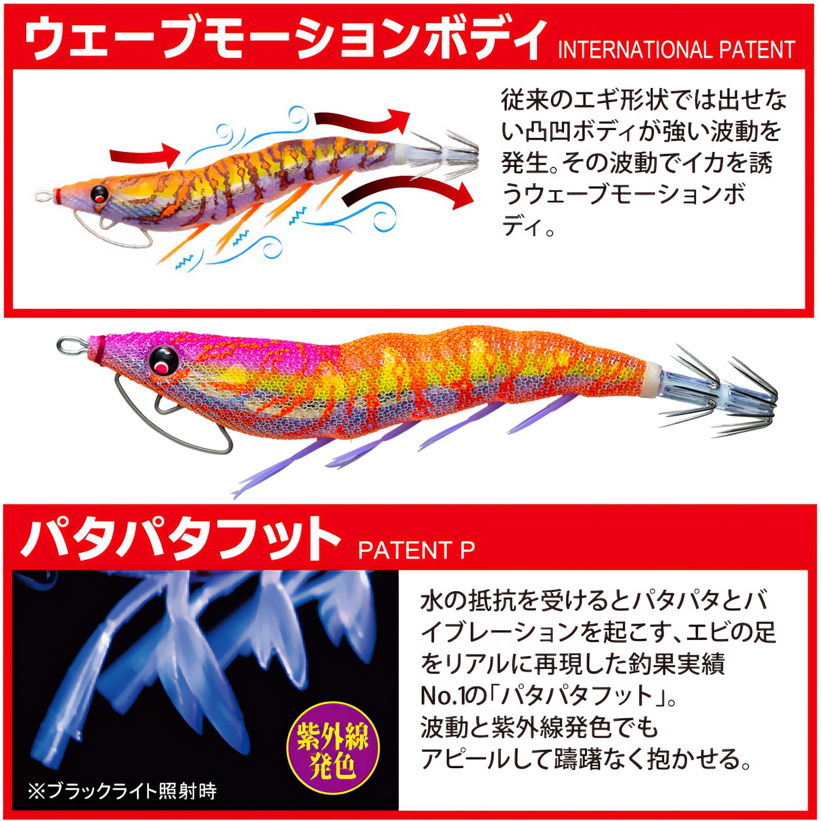 ■「エビ音(カラーラトル)」採用! ! ■「パタパタフット PATENT」採用! ! ■パタパタボックスに入れてもわかりやすい! 背中側にマーク付。