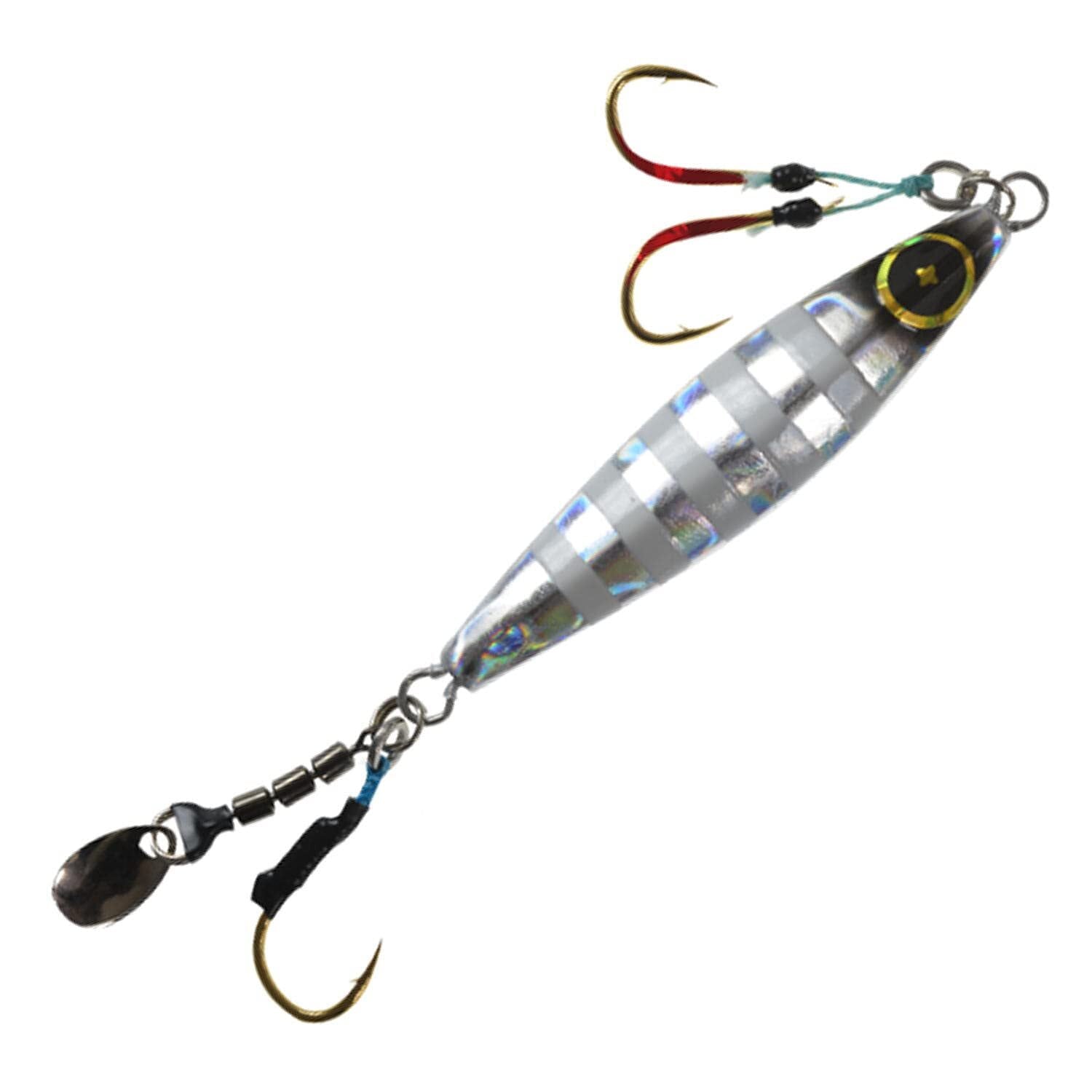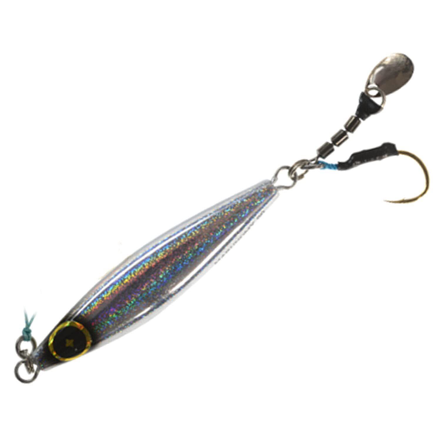 スーパーライトジギング専用ジグ。 スモールサイズにこだわり、ボディサイズを極限まで抑えた丸呑みサイズのスーパーライト専用ジグです。ホログラムスピンブレードを装着したことにより、フラッシングと波動でターゲットを魅了するハイアピールモデルです。真鯛や小型青物、根魚を狙う際に特に有効です。 ◆genre:スーパーライトジギング ◆target:小型青物・フラットフィッシュ・真鯛・イサキ・根魚