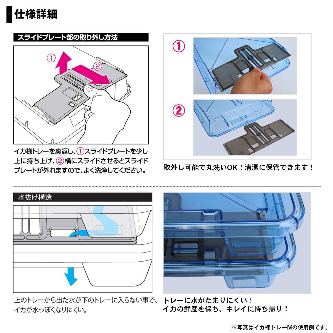 樹脂素材採用でトレーが一度冷えたら温まりにくく、イカを鮮度を保ち、キレイに持ち帰り!