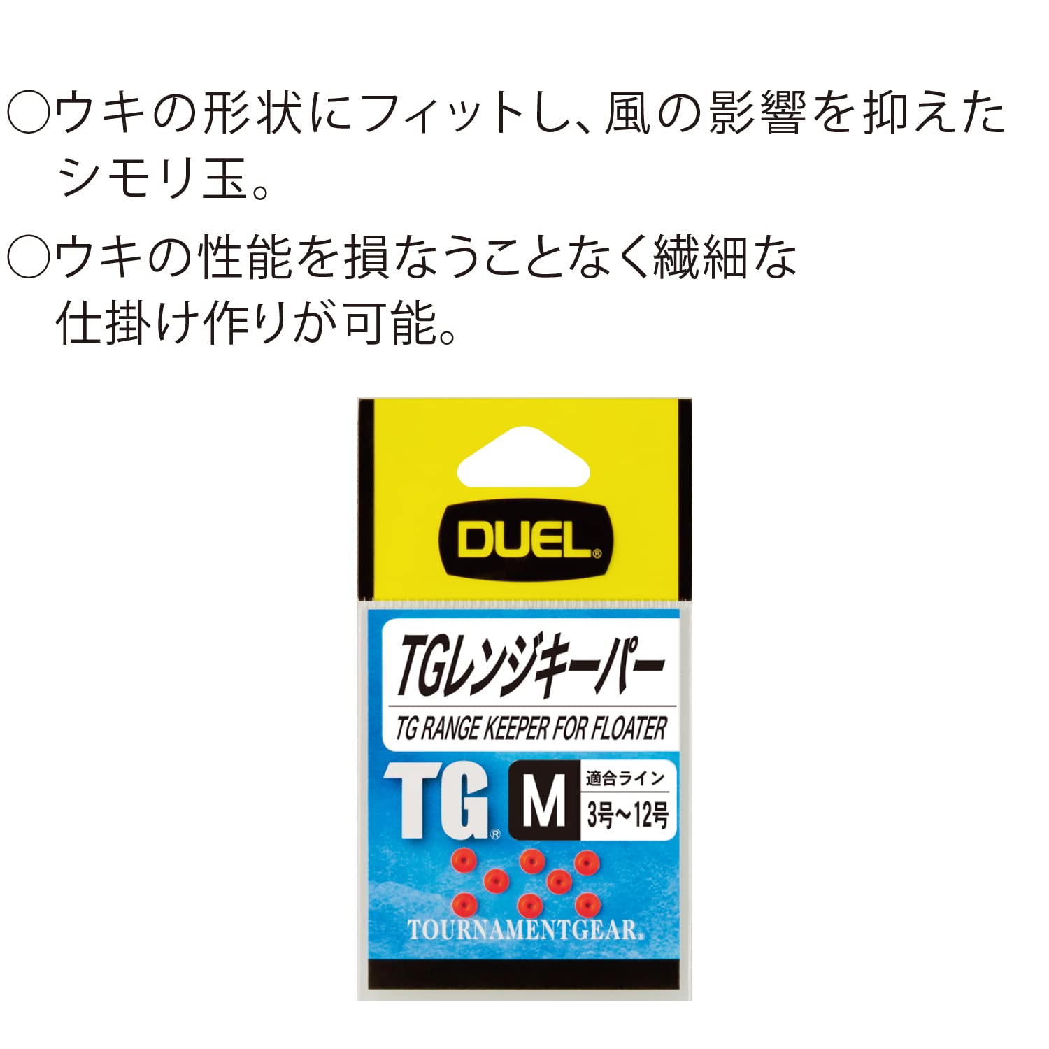 TG レンジキーパー■サイズ:S/M■径(mm):S/3.2、M/3.7■カラー:オレンジ■入数:8個●ウキの形状にフィットし、風の影響を抑えたシモリ玉。●ウキの性能を損なうことなく繊細な仕掛け作りが可能。●テーパー付ホール●適合ライン (道糸)[S]1.5号~8号 [M]3号~12号