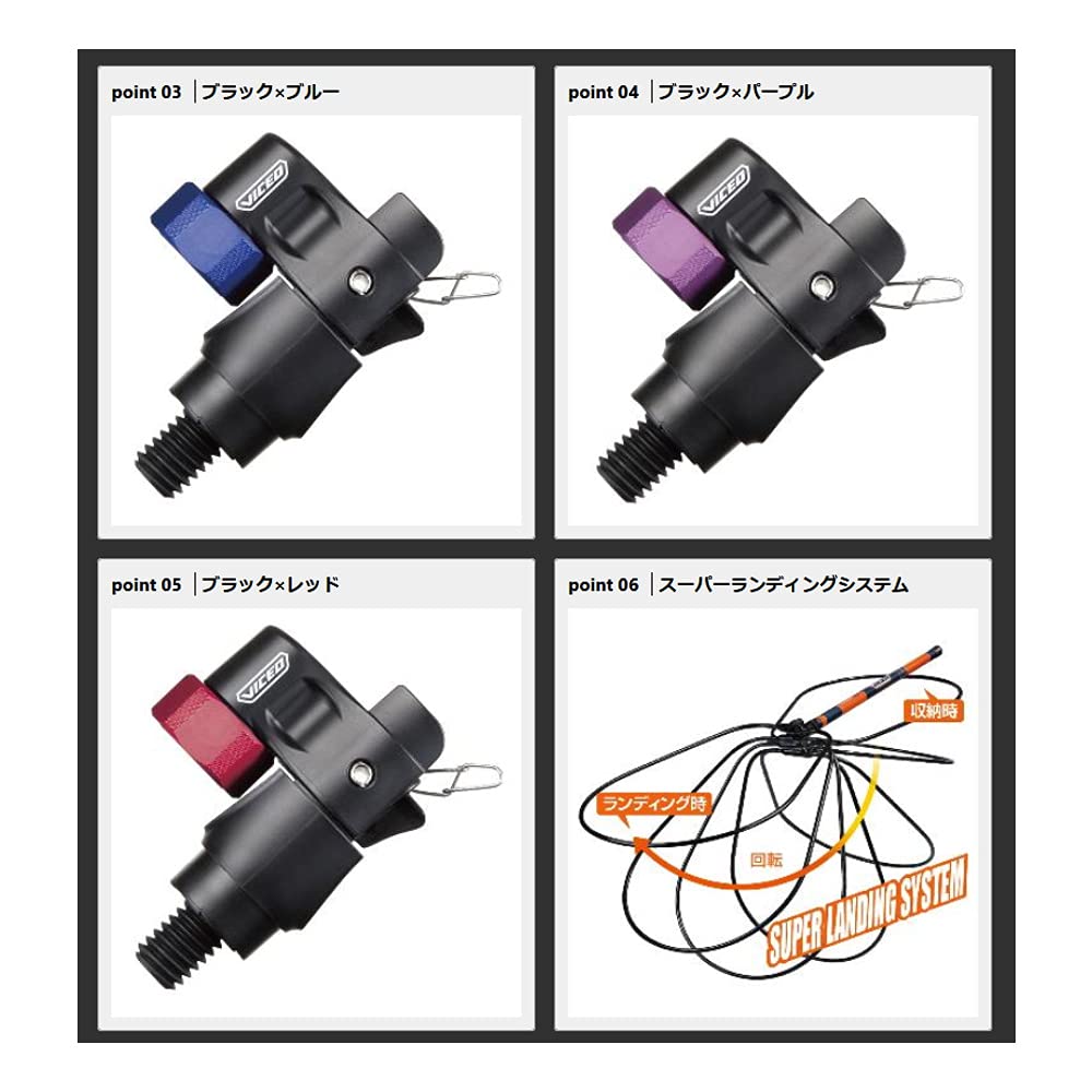 【収納から素早くランディングモードへ/収納・ランディング時ロック機能付/ネットリリーサー付】スーパーランディングシステム用グッズ ビセオ(VICEO) ランディングジョイント カラー:ブラック×ブルー/ブラック×パープル/ブラック×レッド (VC210)【取付簡単/ガラス繊維樹脂プラスチック製で錆びない/超軽量の約62g】