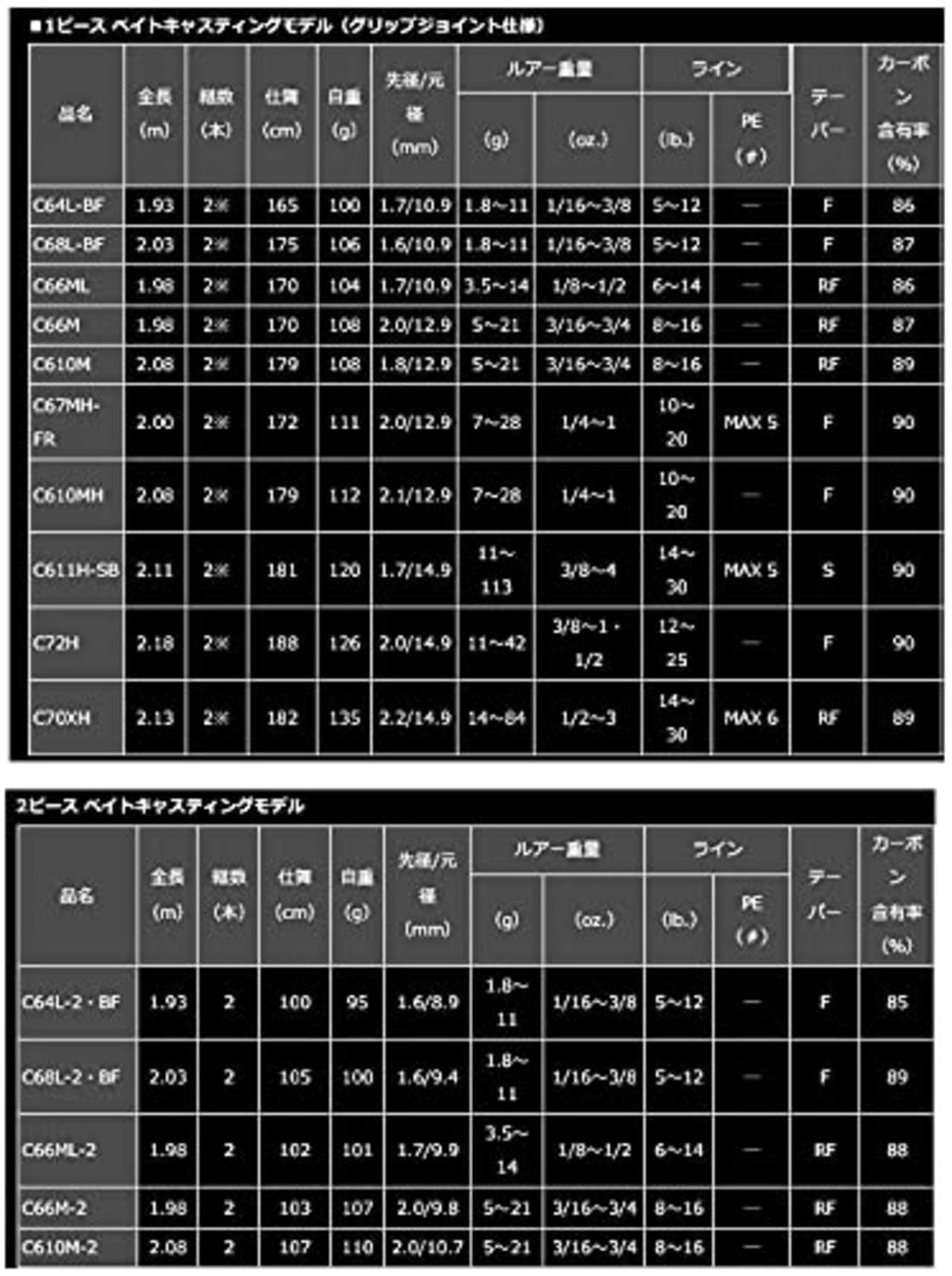 全長(m):1.93 / 継数(本):2 / 仕舞(cm):100