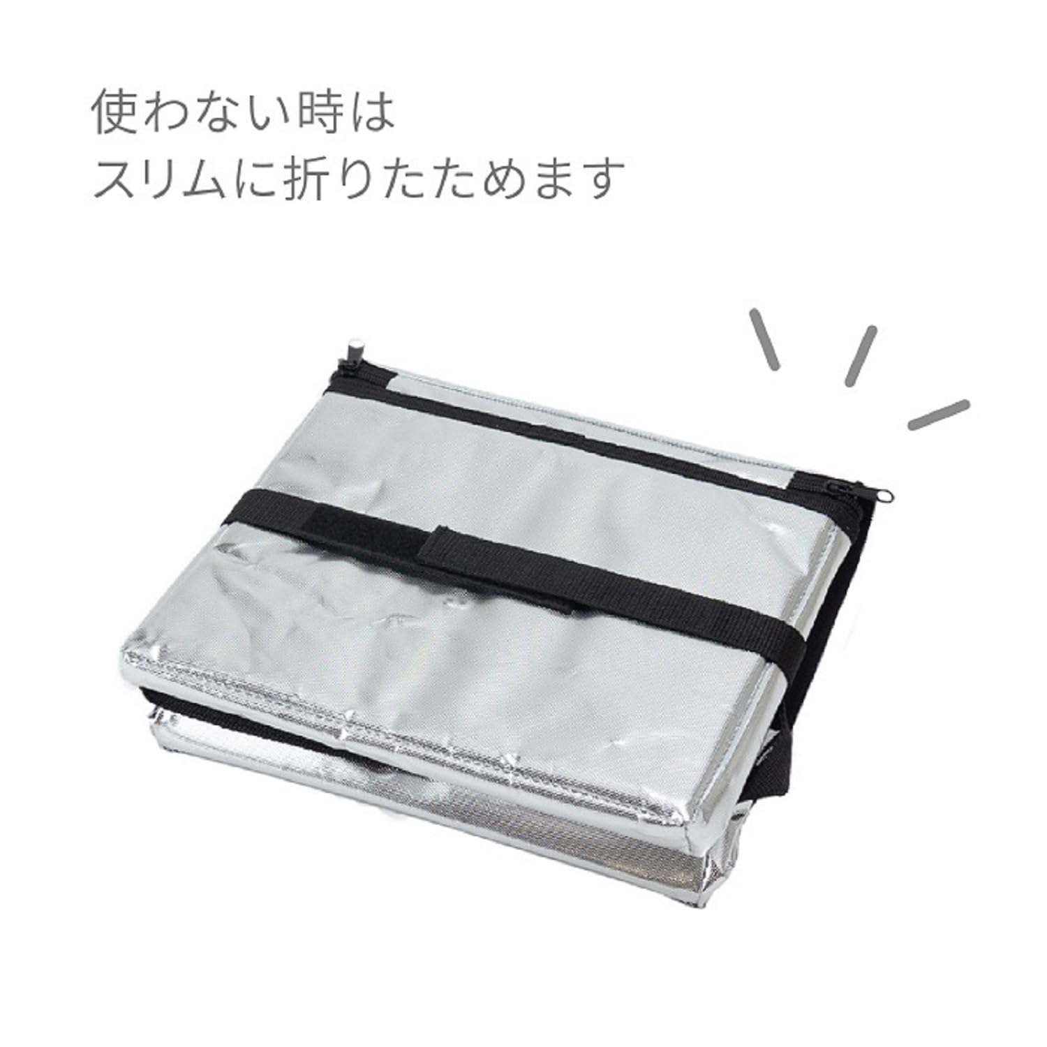 素材:表地/アルミ蒸着ポリ塩化ビニル、断熱材/発砲ポリエチレン、内地/PEVA、中板/ポリエチレン