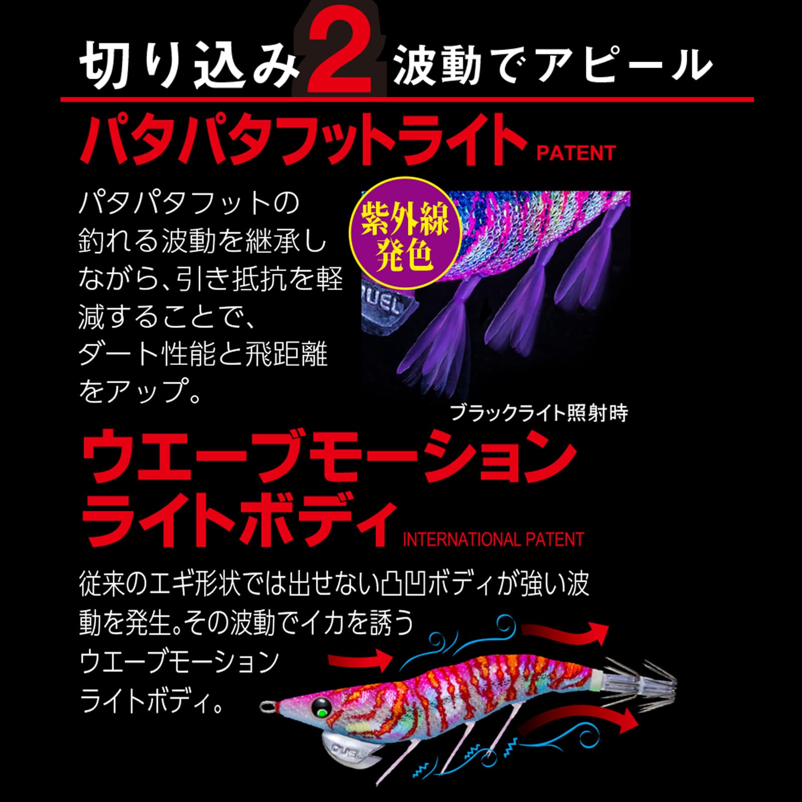 パタパタフットライト:パタパタフットの釣れる波動を継承しながら、引き抵抗を軽減することで、ダート性能と飛距離をアップ。
