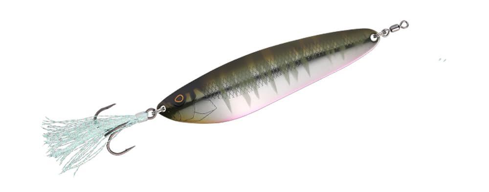 ボトムに向かって逃げていく魚を演出する為、ビッグスプーンとしては珍しくフックを装着するサイドに顔をデザインしています。