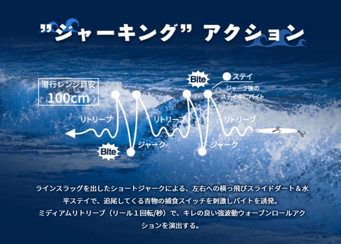 ジャーキング:ショートジャークによる横っ飛びダート&水平ステイで捕食スイッチON