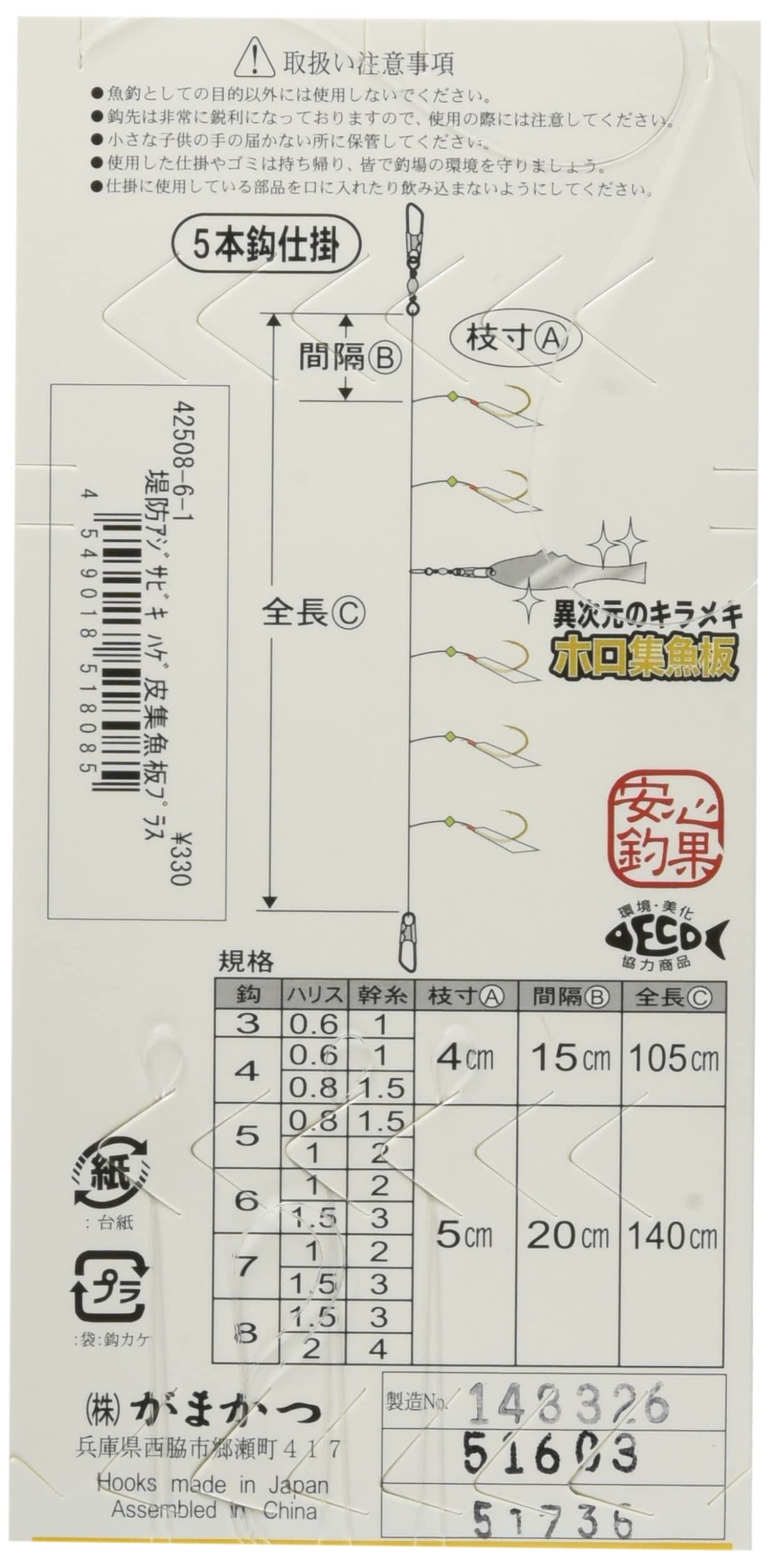 異次元のキラメキ! ホロ仕様。仕掛の中央に集魚板を配し、アピール力抜群の「集魚板プラス」。アジ・サバ・イワシを寄せまくる!