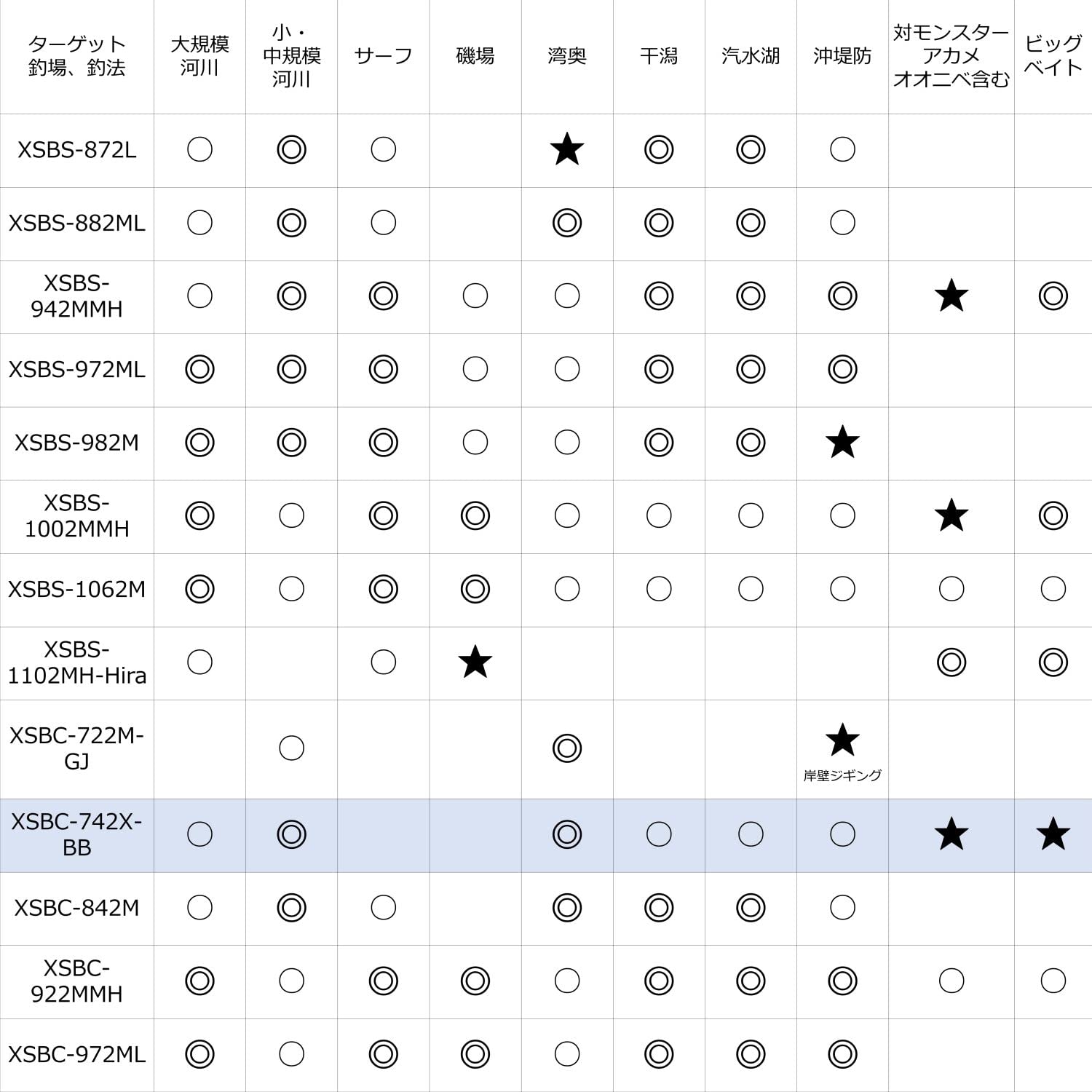 全長:7'4フィート (約223.5cm) / 継数:2本 / 自重:173g / パワー:X / テーパー:レギュラーファースト