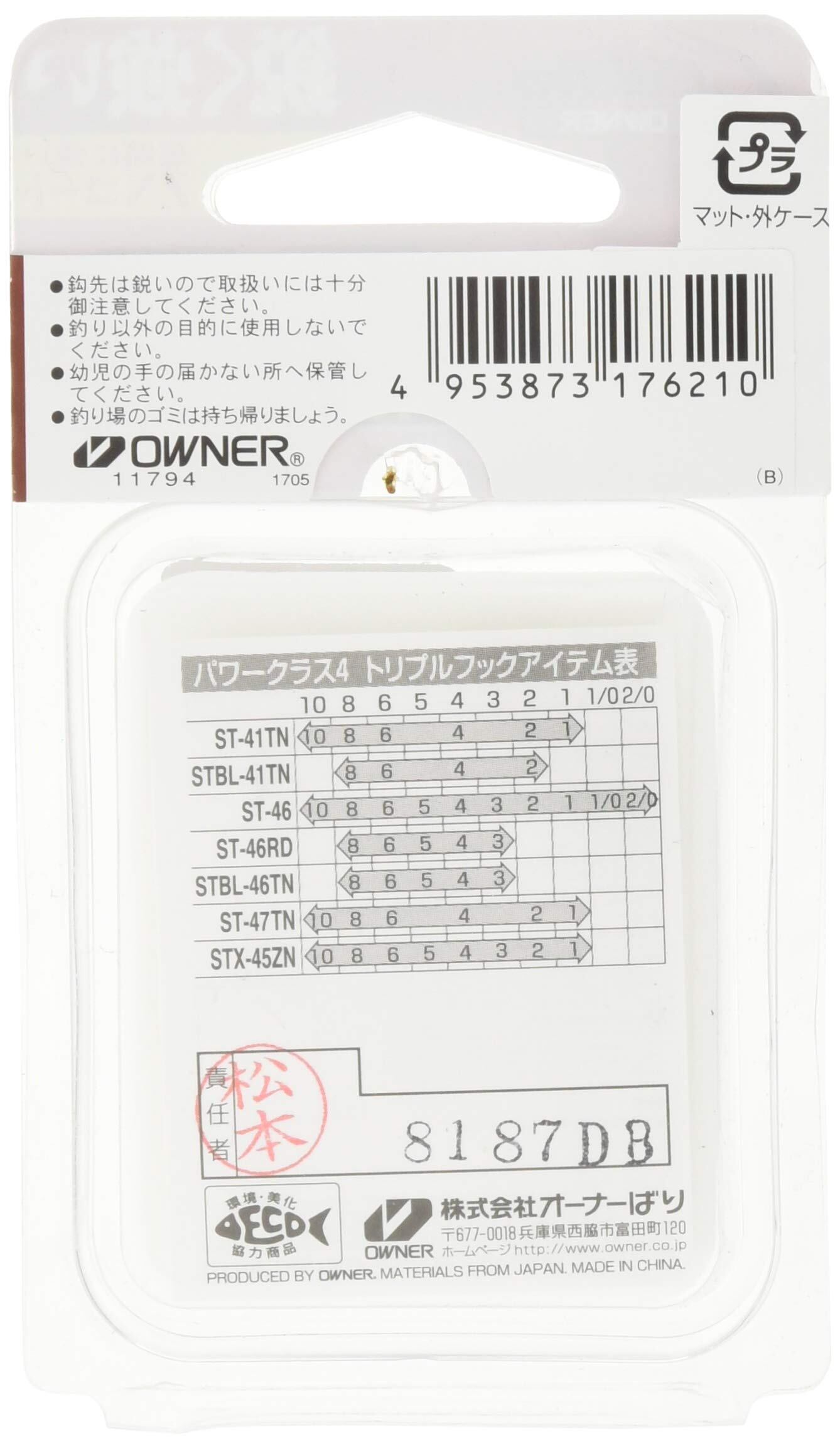 【最新商品】OWNER(オーナー) トリプルフック STX-45ZN スティンガートリプルエクストラ 5号 11794
