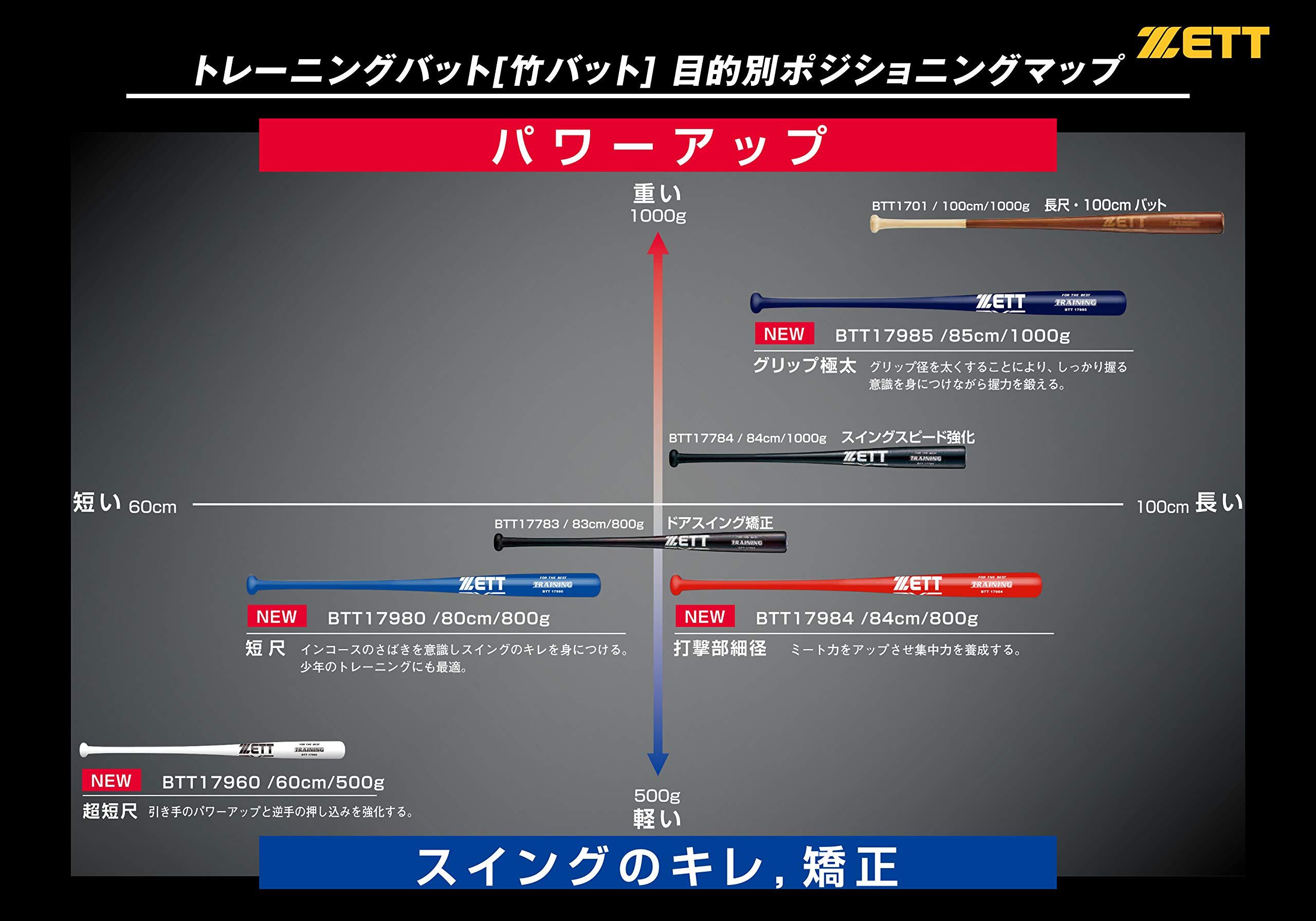 ZETT(ゼット) 野球 合竹 トレーニングバット 60cm/80cm/84cm/85cm 実打撃不可・ティー打撃可