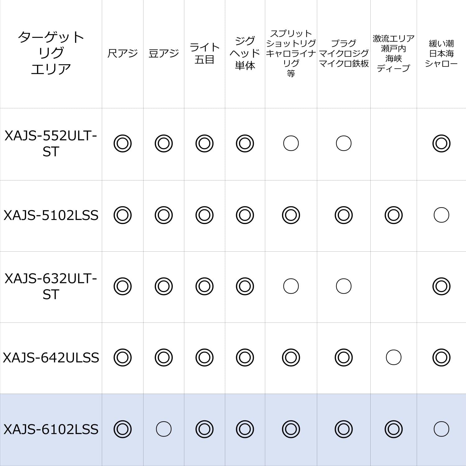 対応ルアーウエイト:0.1~7g / 対応PEライン:0.1~0.5号 / 対応リーダーライン:1.5~5lb